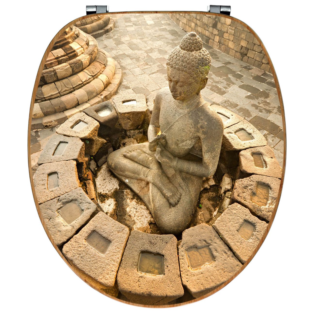 Design WC-Sitz Bambus Holz Motiv Sitzender Buddha