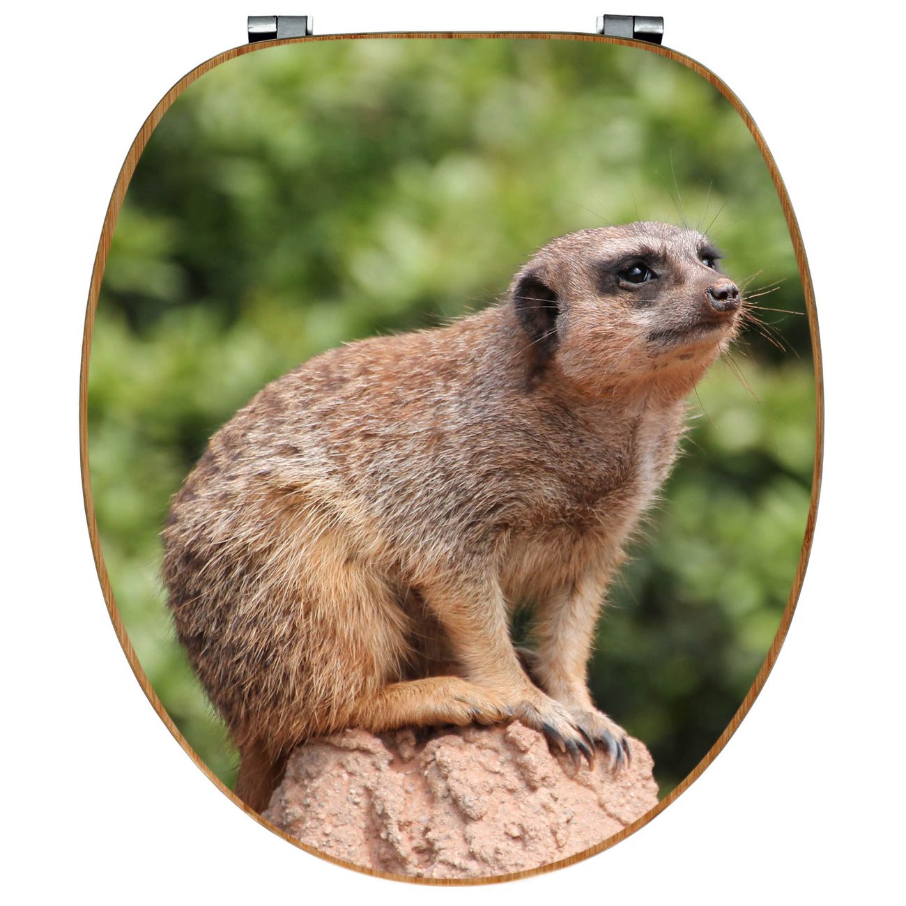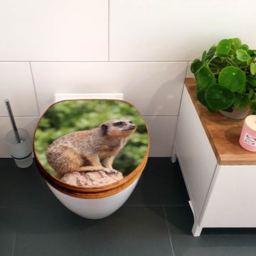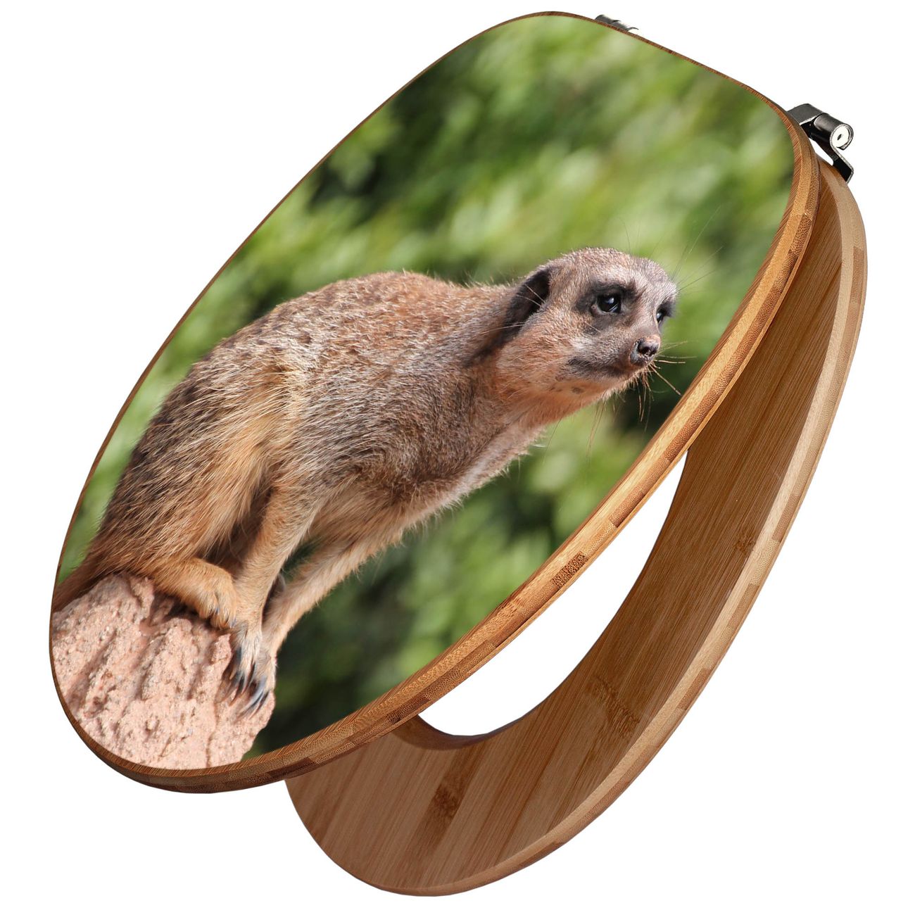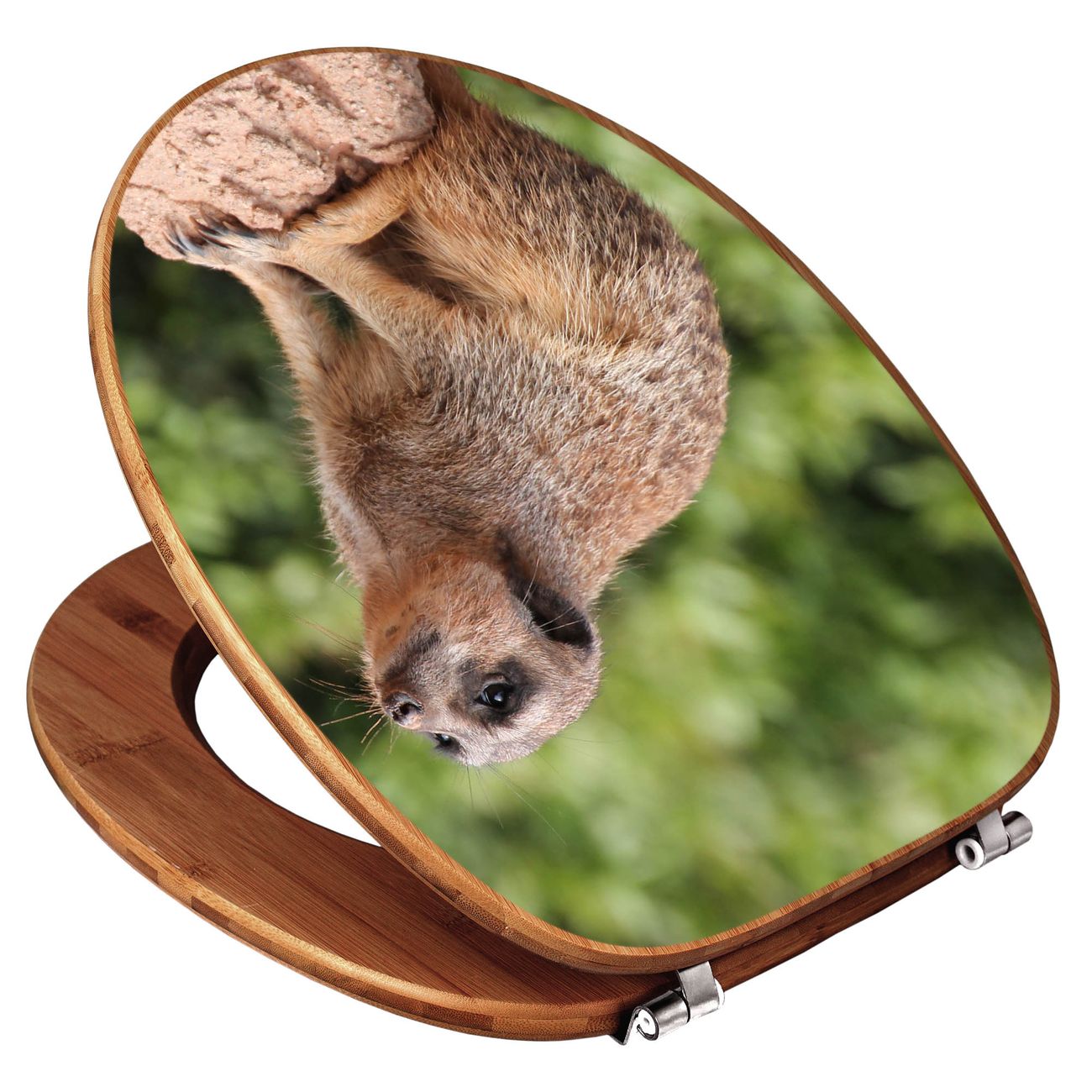 Design WC-Sitz Bambus Holz Motiv Sitzendes Erdmännchen