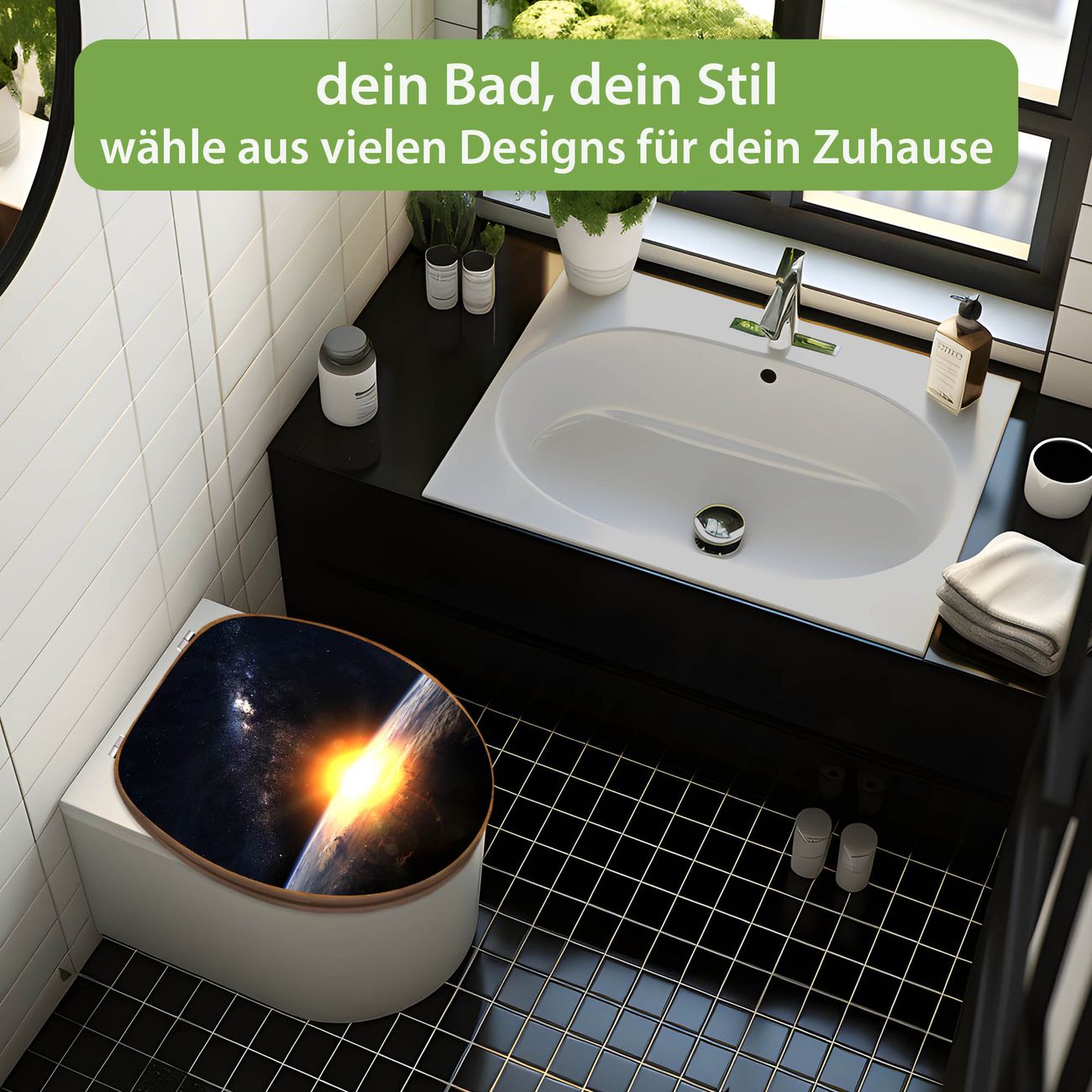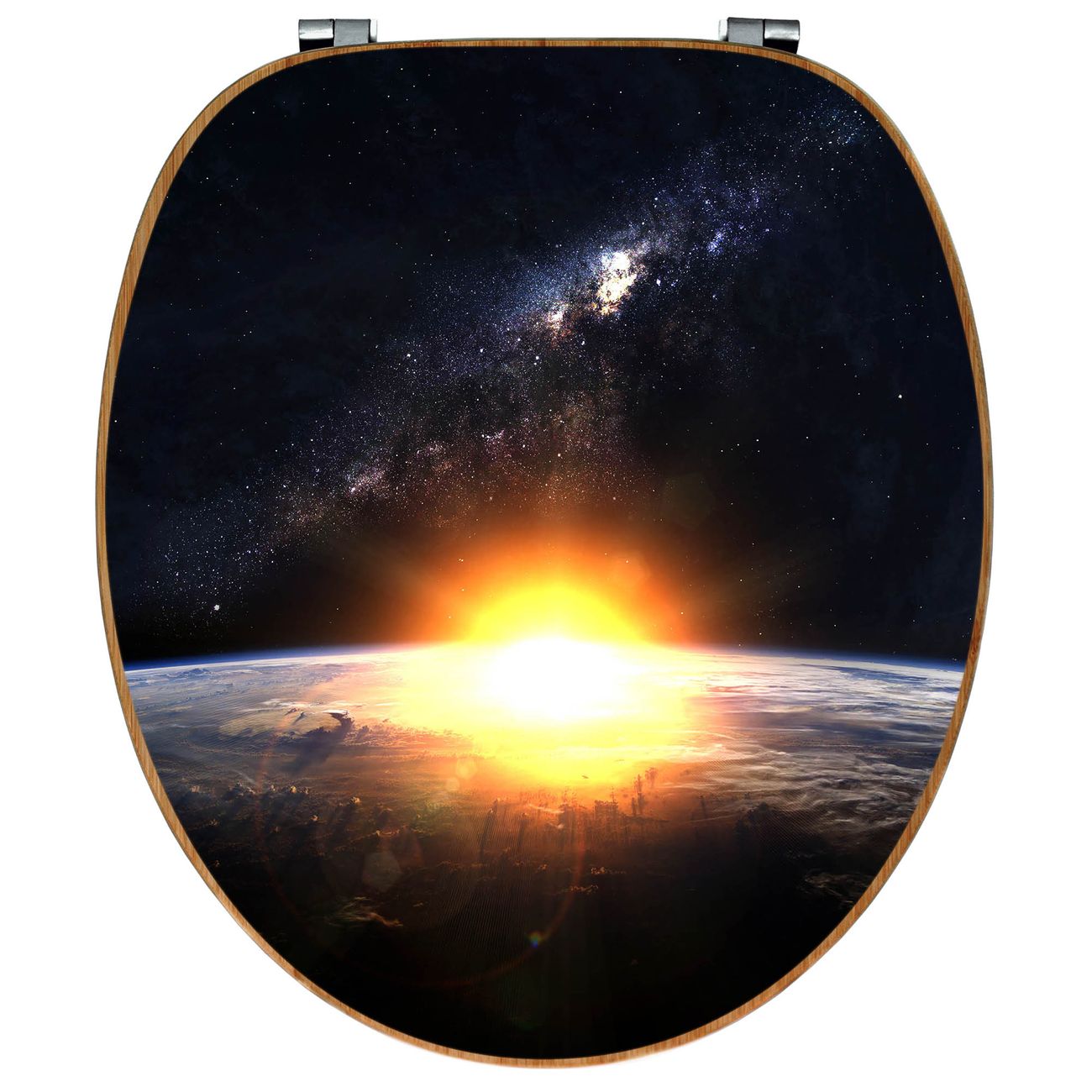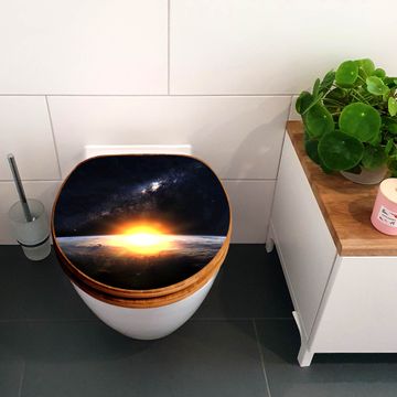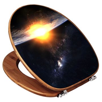 Design WC-Sitz Bambus Holz Motiv Sonne im Weltall