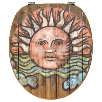 Mit dem banjado Toilettensitz in Bambus verbinden Sie Design und Funktionalität. Sie erhalten den WC-Sitz mit bewährt schwerer Holz Qualität und Universal Scharnieren. Das Motiv Motiv Sonne besteht aus einer schutzlaminierten Motivfolie, die durch das Schutzlaminat zusätzlich vor Kratzern schützt. Durch diesen Motivdruck wird der WC-Sitz zu einem Blickfang in Ihrem Bad.