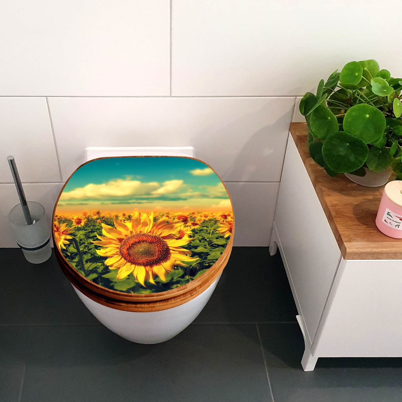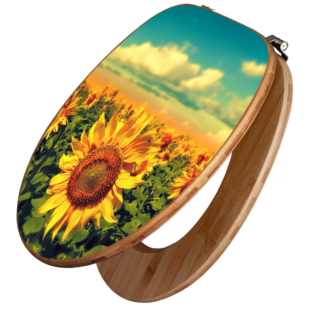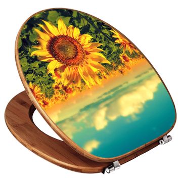 Design WC-Sitz Bambus Holz Motiv Sonnenblumen