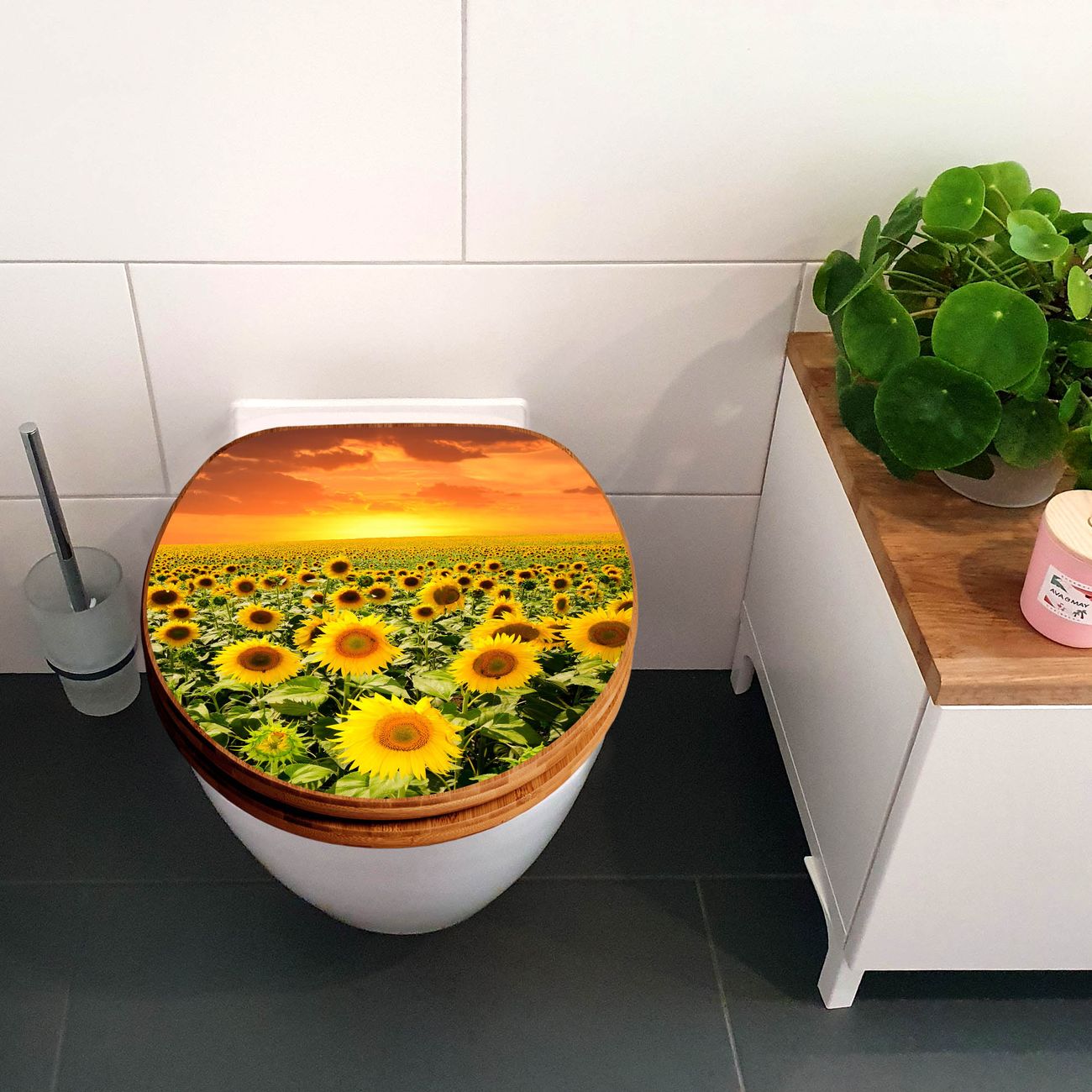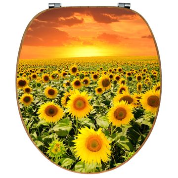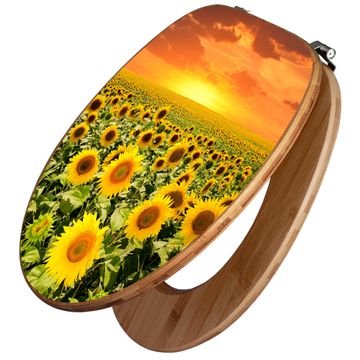 Design WC-Sitz Bambus Holz Motiv Sonnenblumenmeer