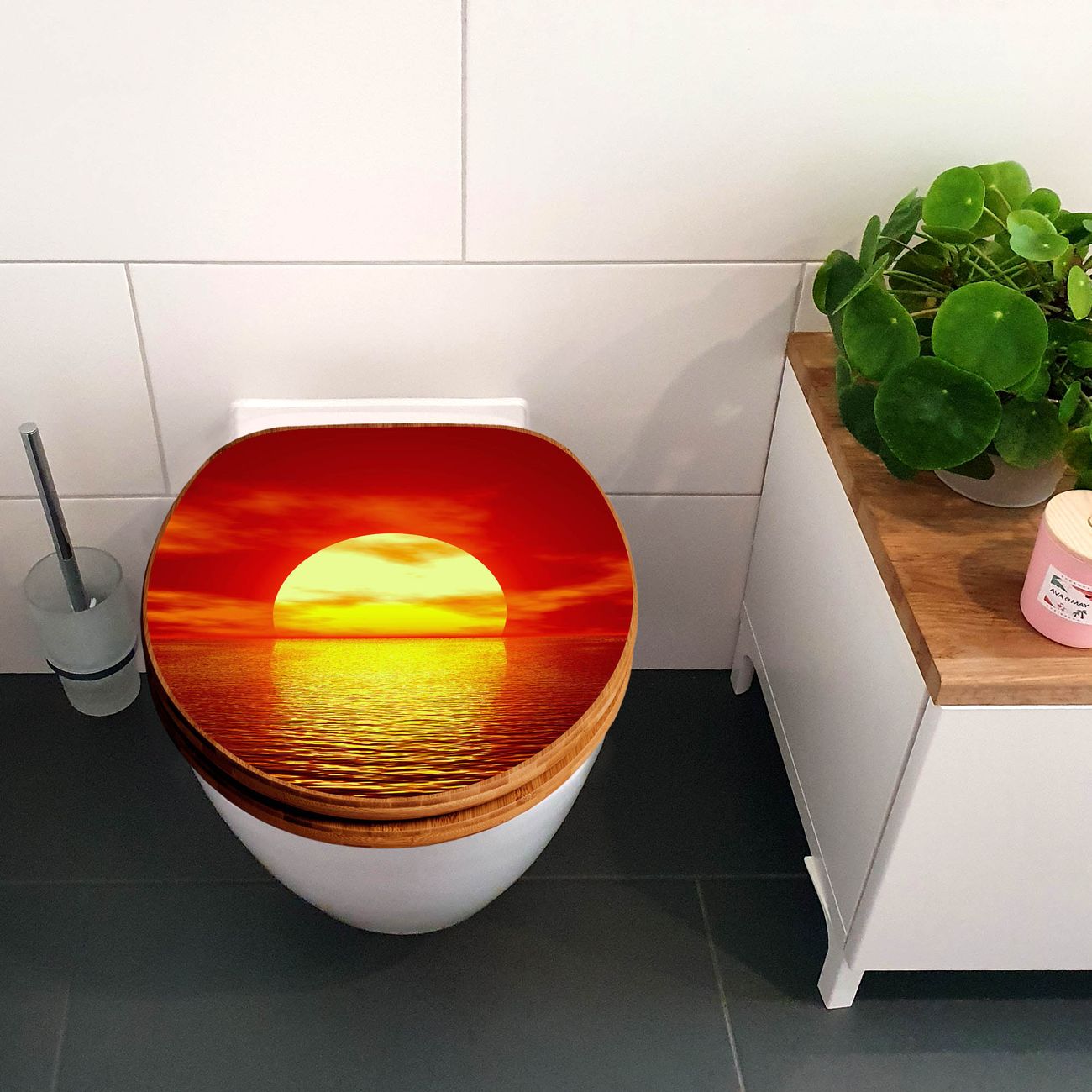 Design WC-Sitz Bambus Holz Motiv Sonnenuntergang