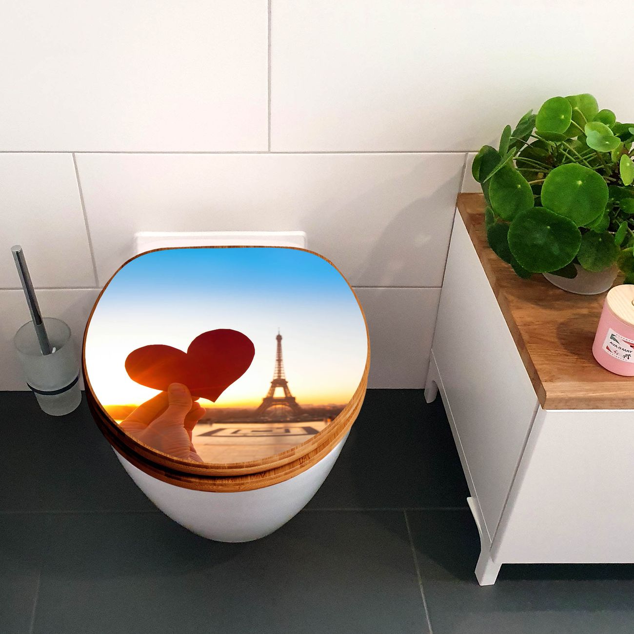 Design WC-Sitz Bambus Holz Motiv Stadt Der Liebe