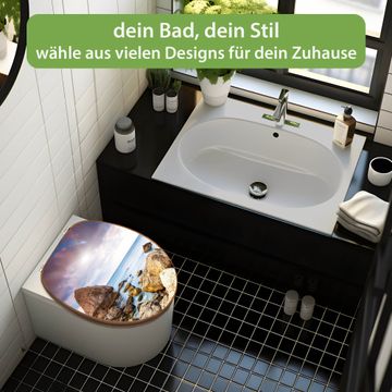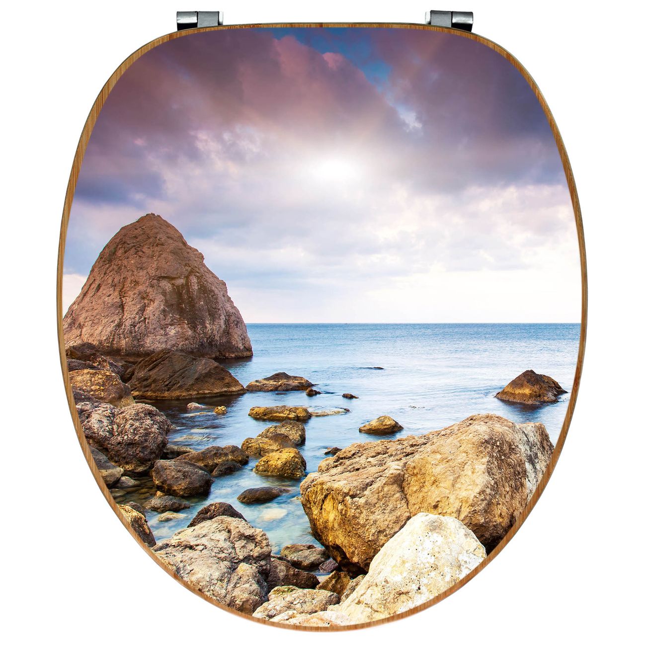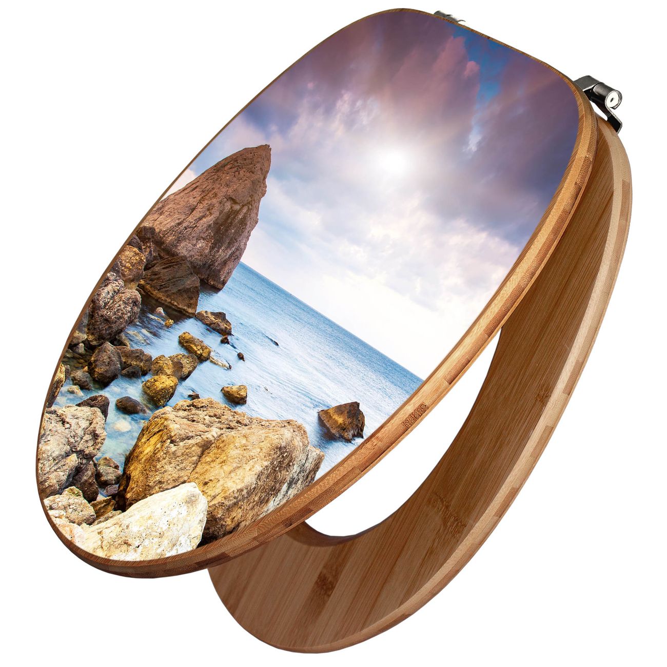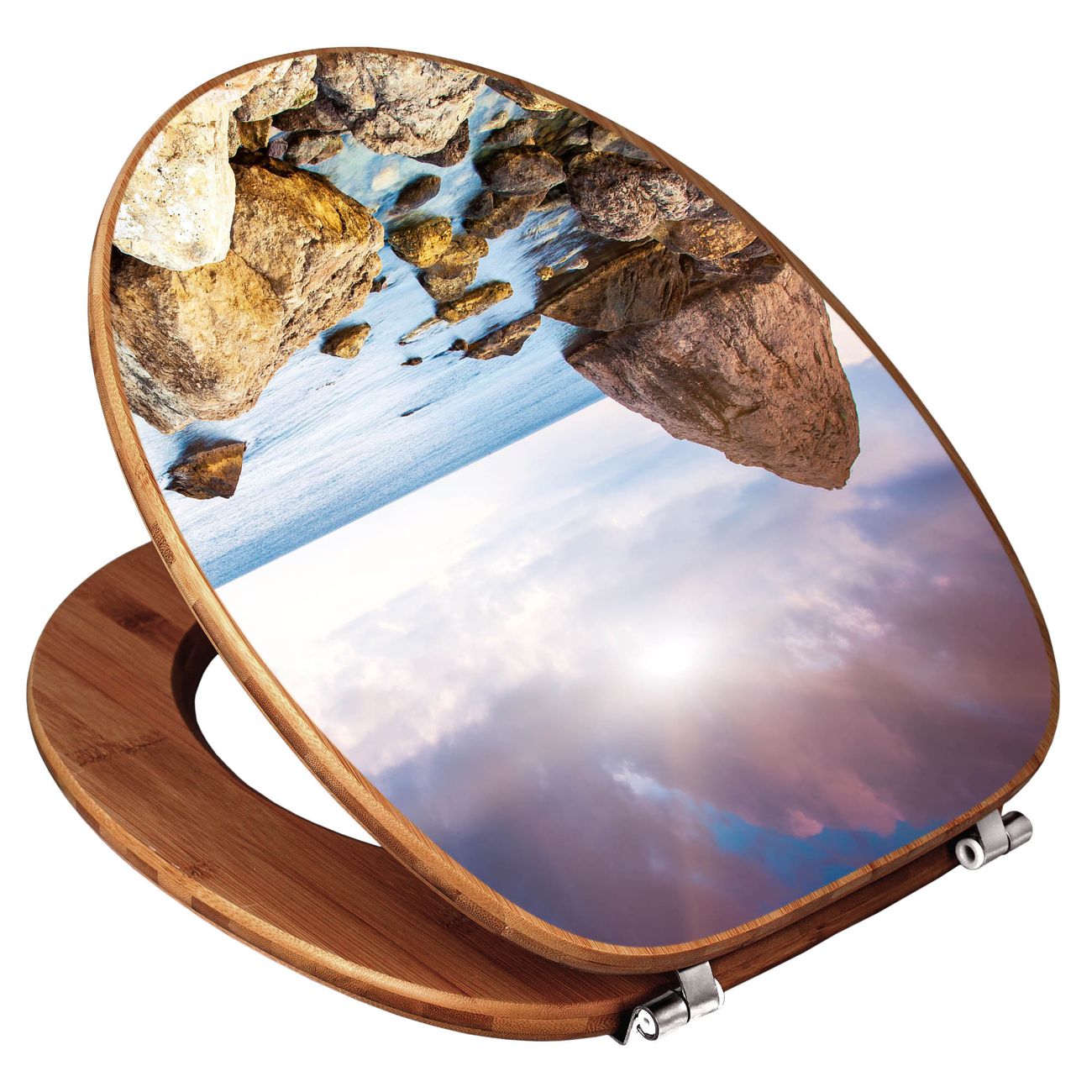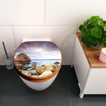 Mit dem banjado Toilettensitz in Bambus verbinden Sie Design und Funktionalität. Sie erhalten den WC-Sitz mit bewährt schwerer Holz Qualität und Universal Scharnieren. Das Motiv Motiv Steinbucht besteht aus einer schutzlaminierten Motivfolie, die durch das Schutzlaminat zusätzlich vor Kratzern schützt. Durch diesen Motivdruck wird der WC-Sitz zu einem Blickfang in Ihrem Bad.