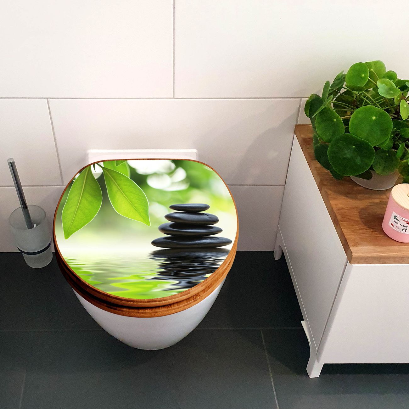 Design WC-Sitz Bambus Holz Motiv Steine&Relax