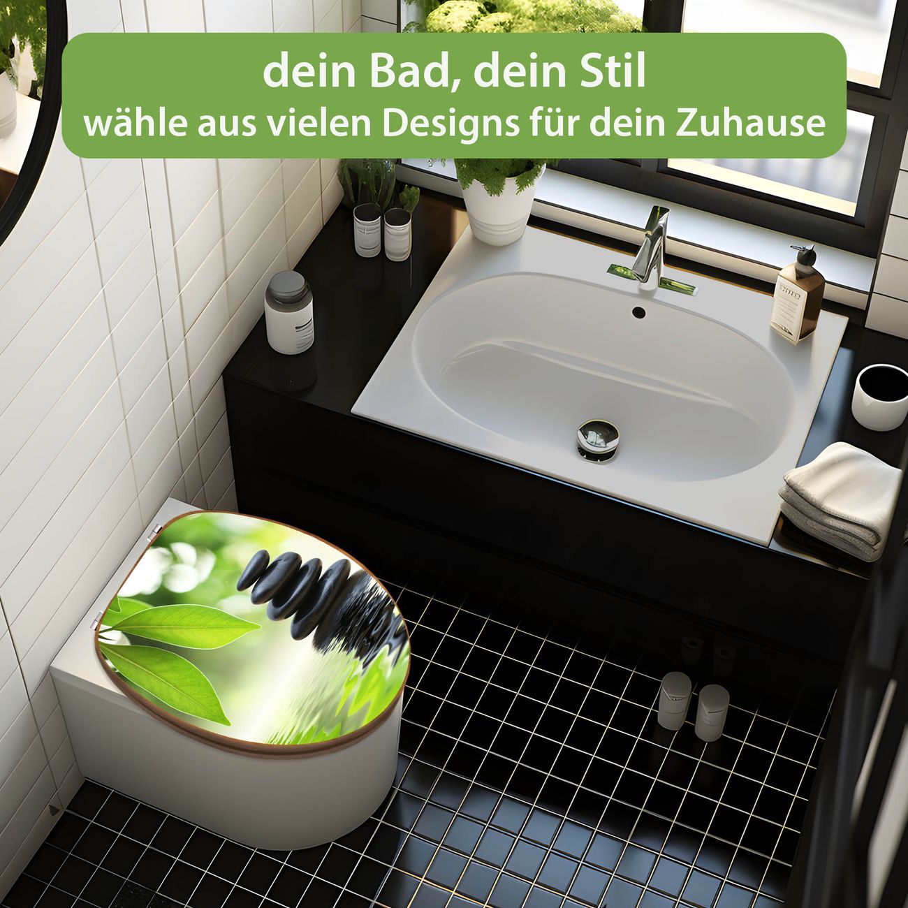 Mit dem banjado Toilettensitz in Bambus verbinden Sie Design und Funktionalität. Sie erhalten den WC-Sitz mit bewährt schwerer Holz Qualität und Universal Scharnieren. Das Motiv Motiv Steine&Relax besteht aus einer schutzlaminierten Motivfolie, die durch das Schutzlaminat zusätzlich vor Kratzern schützt. Durch diesen Motivdruck wird der WC-Sitz zu einem Blickfang in Ihrem Bad.