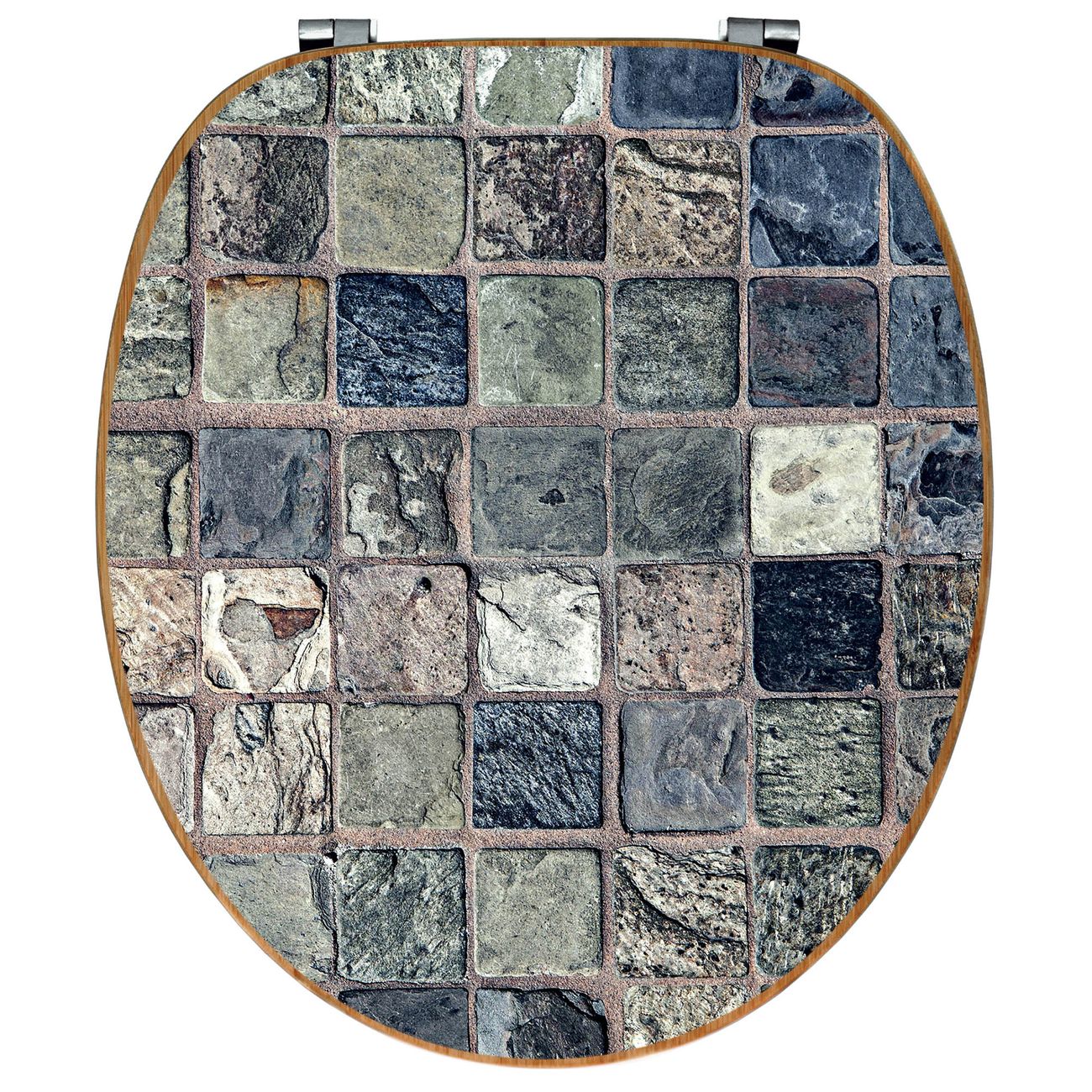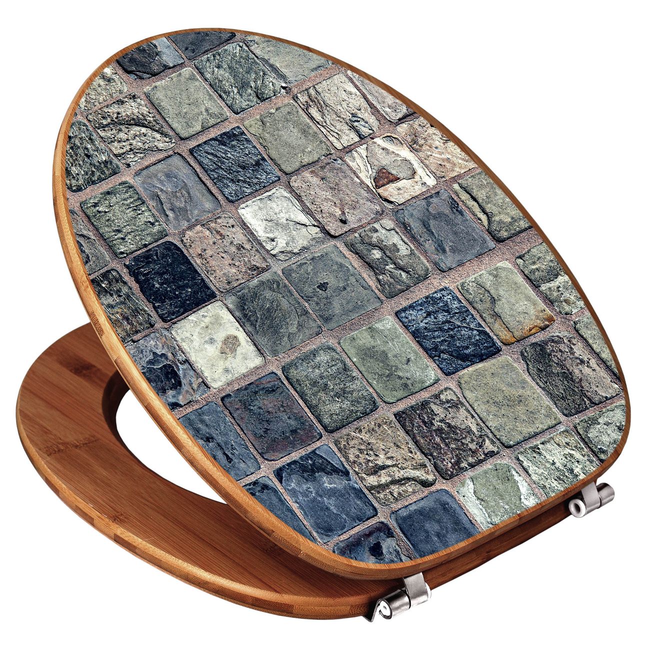 Mit dem banjado Toilettensitz in Bambus verbinden Sie Design und Funktionalität. Sie erhalten den WC-Sitz mit bewährt schwerer Holz Qualität und Universal Scharnieren. Das Motiv Motiv Steinfliesen besteht aus einer schutzlaminierten Motivfolie, die durch das Schutzlaminat zusätzlich vor Kratzern schützt. Durch diesen Motivdruck wird der WC-Sitz zu einem Blickfang in Ihrem Bad.