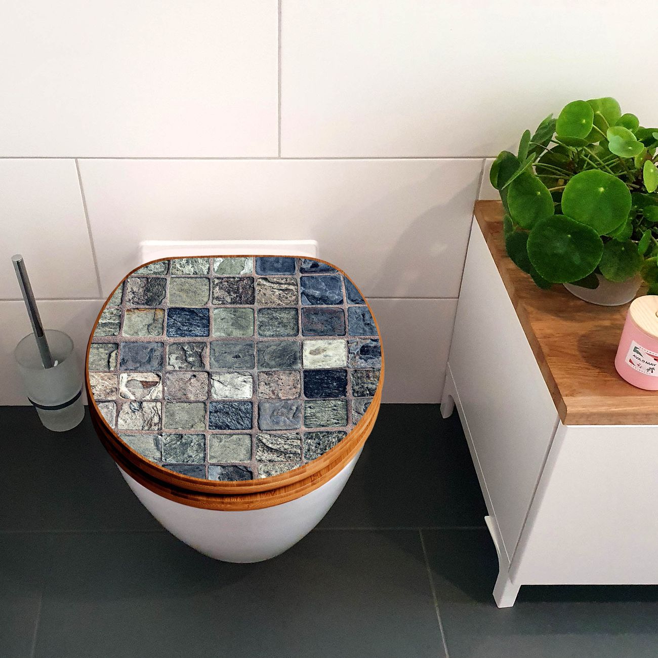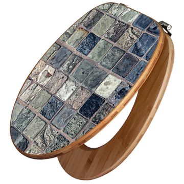 Design WC-Sitz Bambus Holz Motiv Steinfliesen