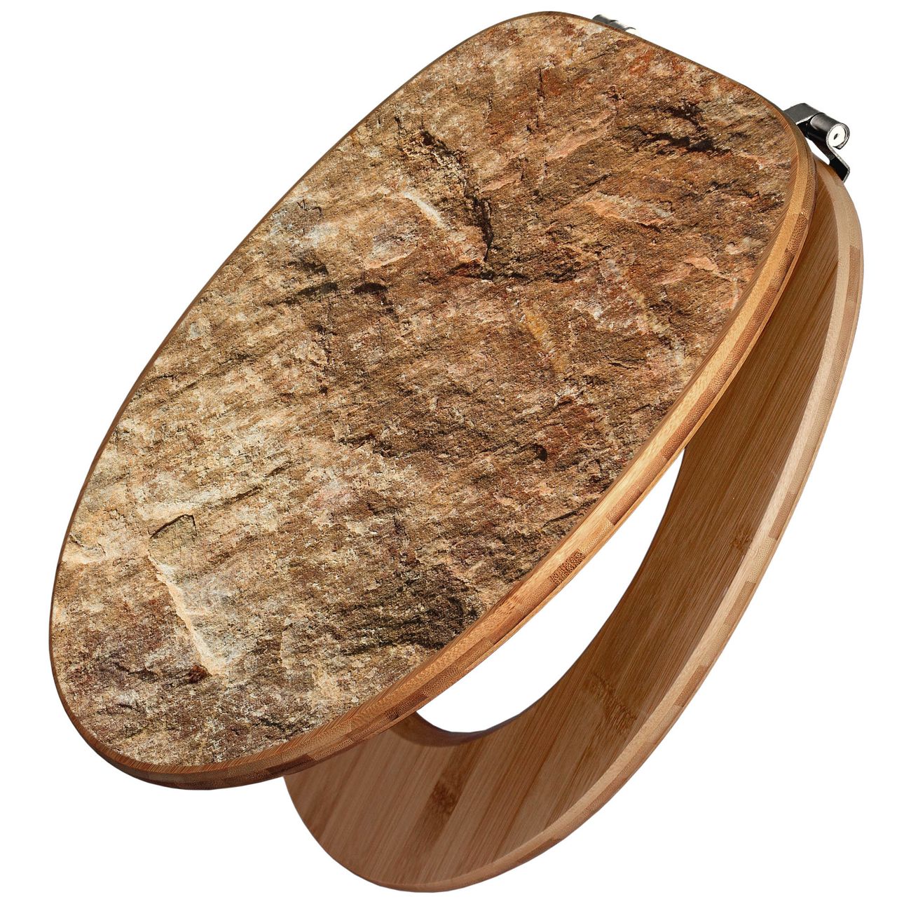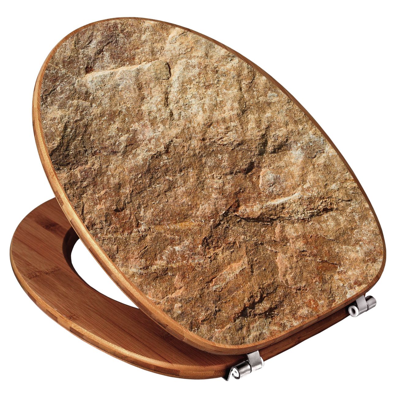 Mit dem banjado Toilettensitz in Bambus verbinden Sie Design und Funktionalität. Sie erhalten den WC-Sitz mit bewährt schwerer Holz Qualität und Universal Scharnieren. Das Motiv Motiv Steinstruktur besteht aus einer schutzlaminierten Motivfolie, die durch das Schutzlaminat zusätzlich vor Kratzern schützt. Durch diesen Motivdruck wird der WC-Sitz zu einem Blickfang in Ihrem Bad.