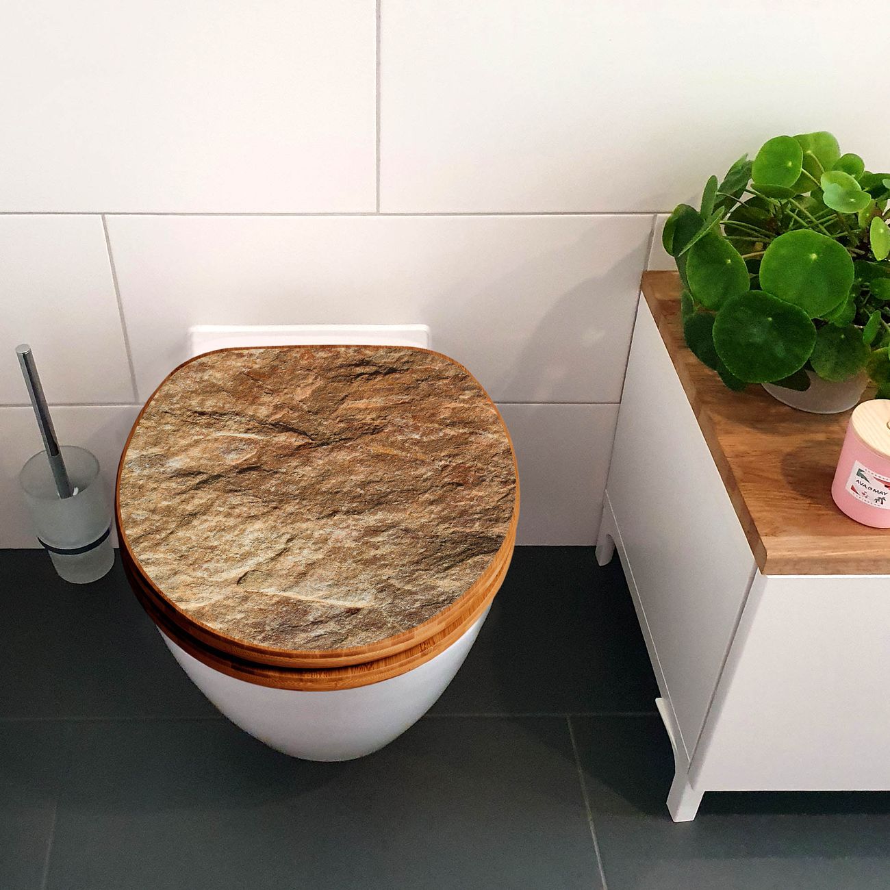 Design WC-Sitz Bambus Holz Motiv Steinstruktur