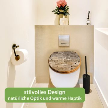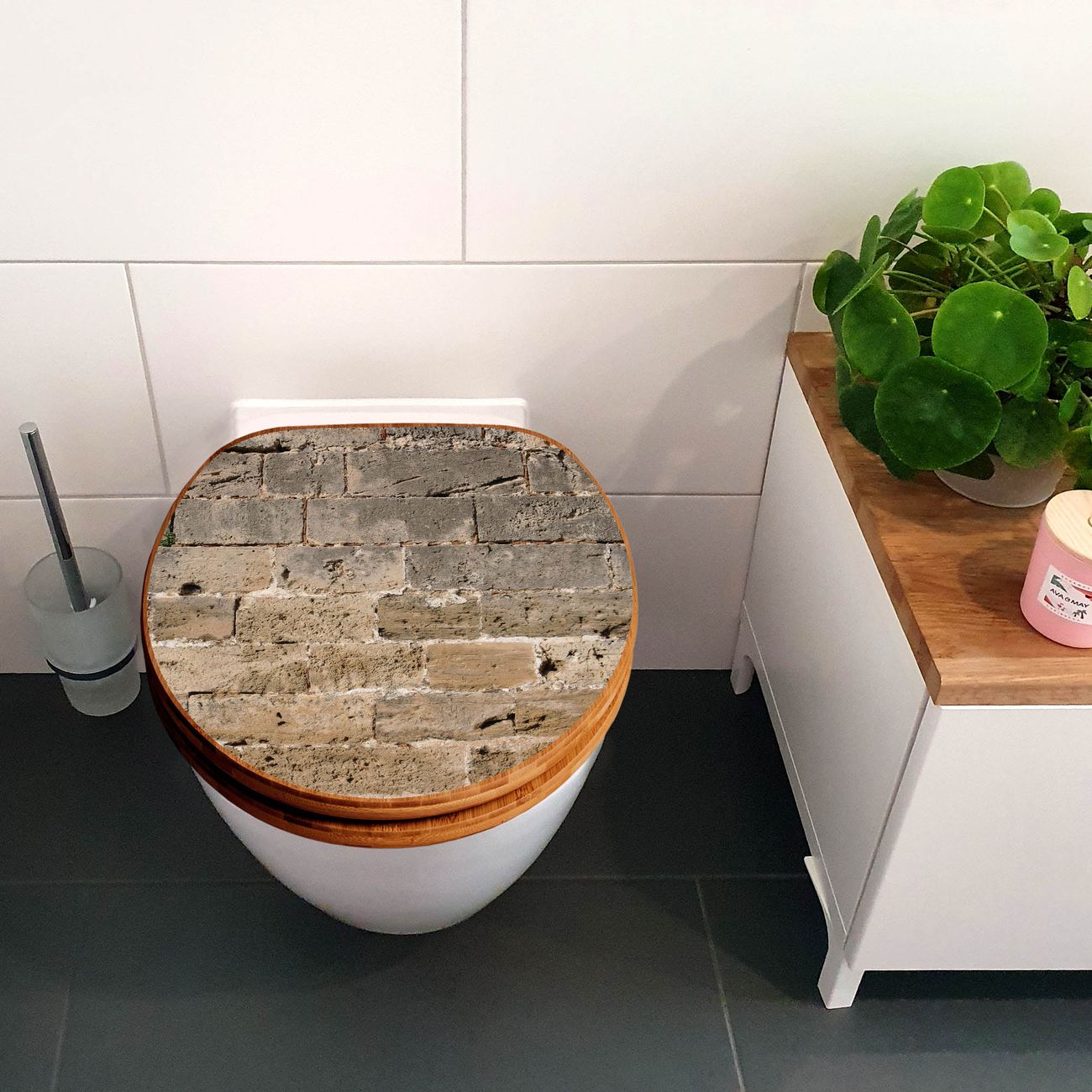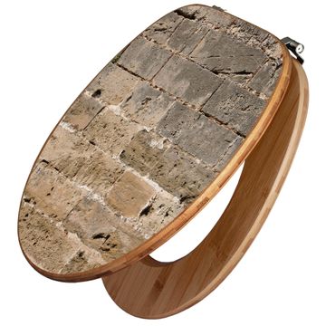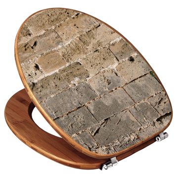 Design WC-Sitz Bambus Holz Motiv Steinwand Antik