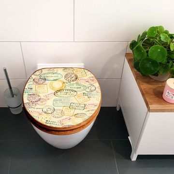 Mit dem banjado Toilettensitz in Bambus verbinden Sie Design und Funktionalität. Sie erhalten den WC-Sitz mit bewährt schwerer Holz Qualität und Universal Scharnieren. Das Motiv Motiv Stempel besteht aus einer schutzlaminierten Motivfolie, die durch das Schutzlaminat zusätzlich vor Kratzern schützt. Durch diesen Motivdruck wird der WC-Sitz zu einem Blickfang in Ihrem Bad.