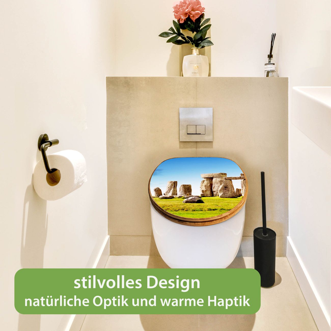 Design WC-Sitz Bambus Holz Motiv Stonehenge