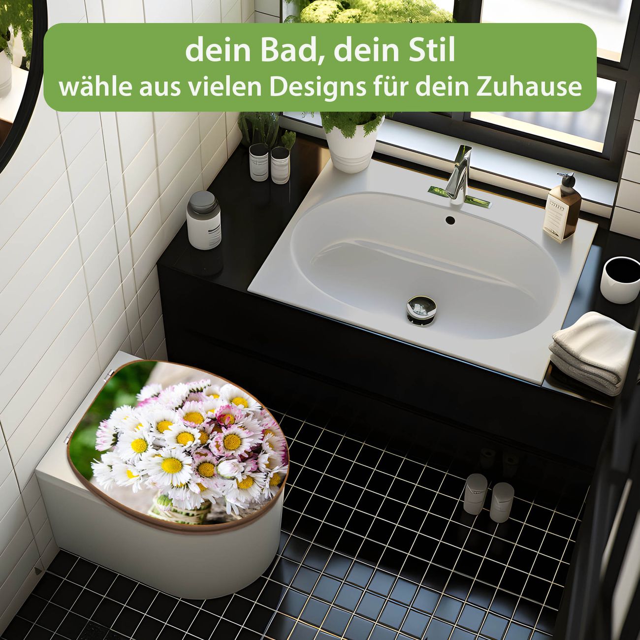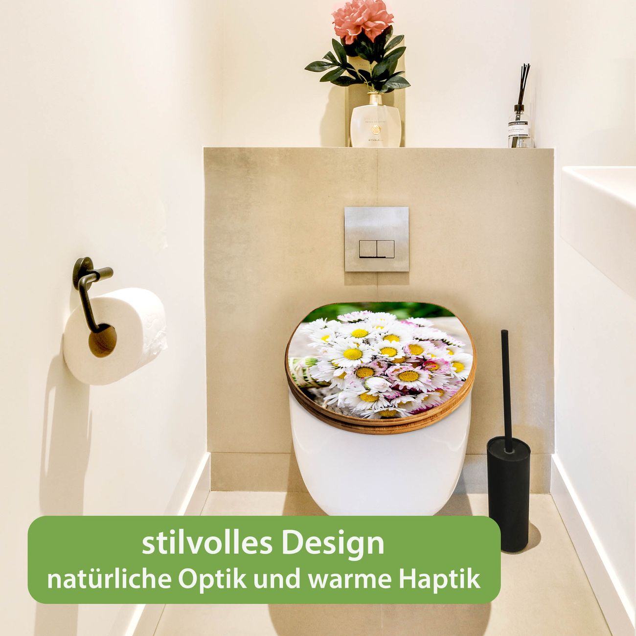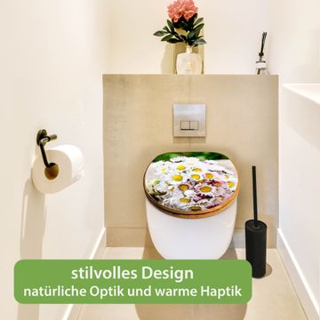 Design WC-Sitz Bambus Holz Motiv Strauß Gänseblümchen