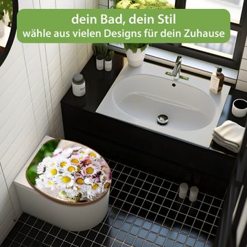 Mit dem banjado Toilettensitz in Bambus verbinden Sie Design und Funktionalität. Sie erhalten den WC-Sitz mit bewährt schwerer Holz Qualität und Universal Scharnieren. Das Motiv Motiv Strauß Gänseblümchen besteht aus einer schutzlaminierten Motivfolie, die durch das Schutzlaminat zusätzlich vor Kratzern schützt. Durch diesen Motivdruck wird der WC-Sitz zu einem Blickfang in Ihrem Bad.
