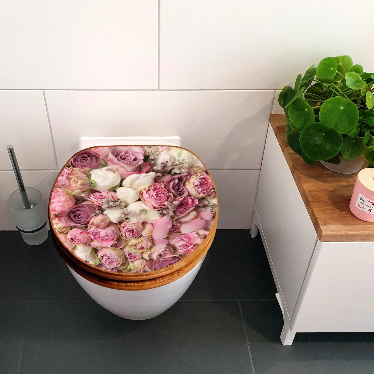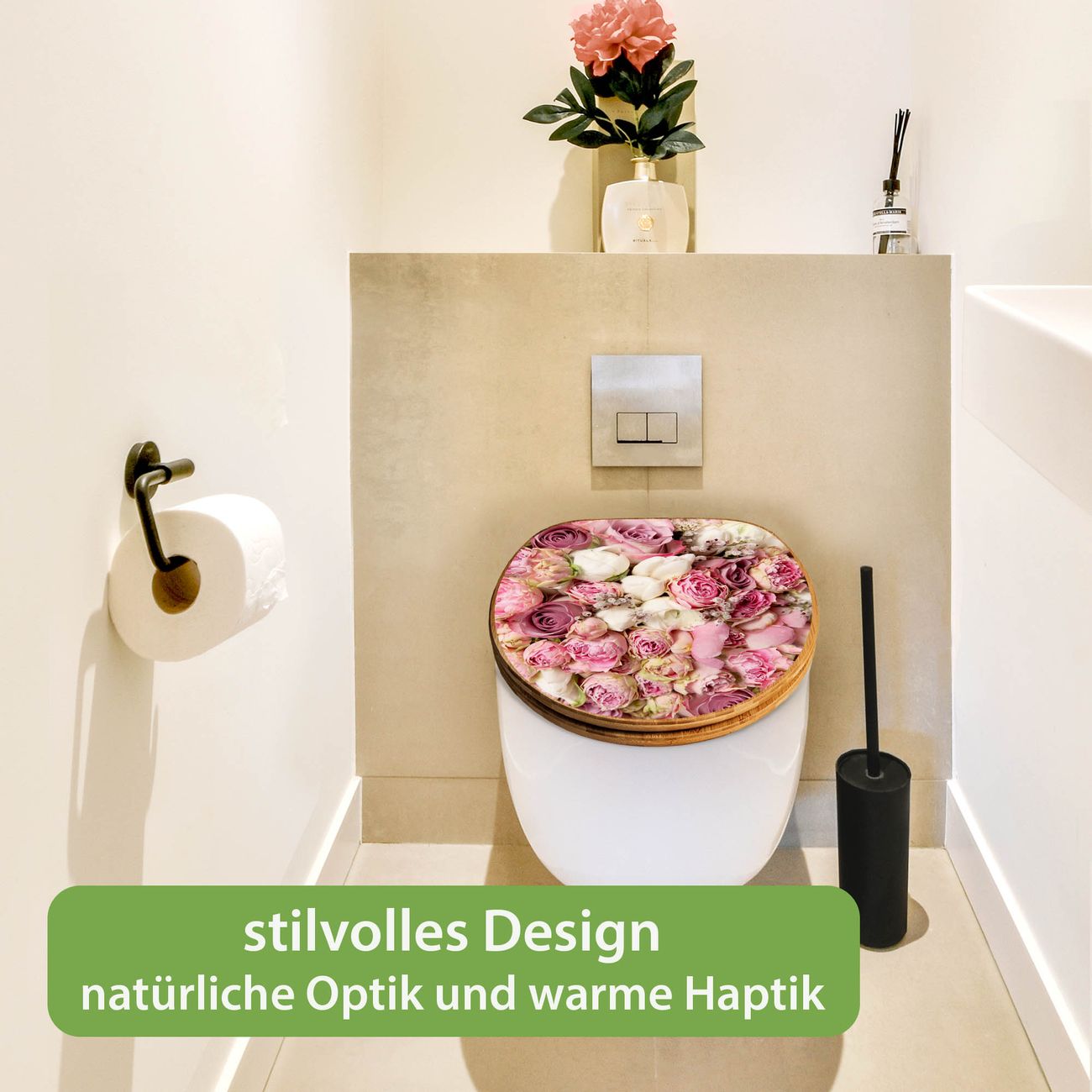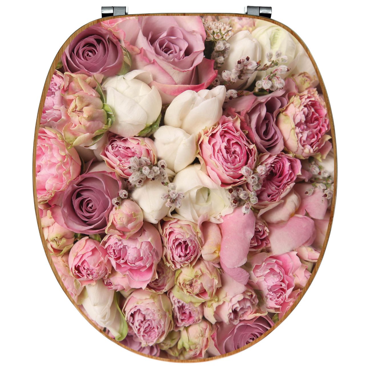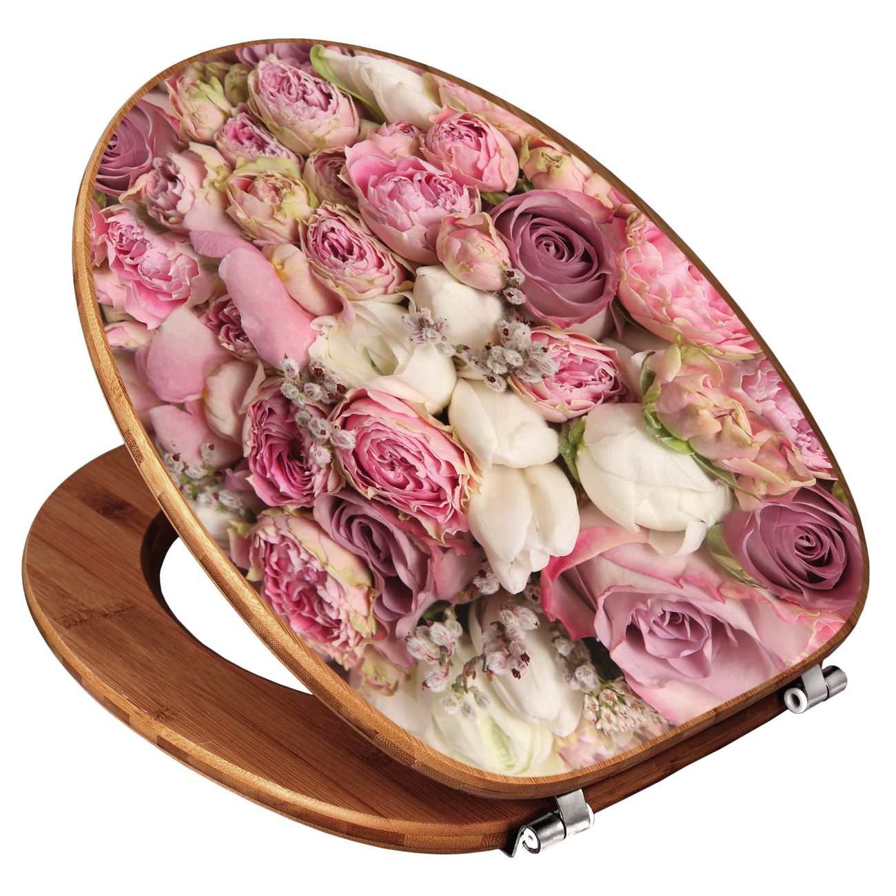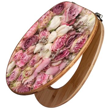 Design WC-Sitz Bambus Holz Motiv Strauss Rosen