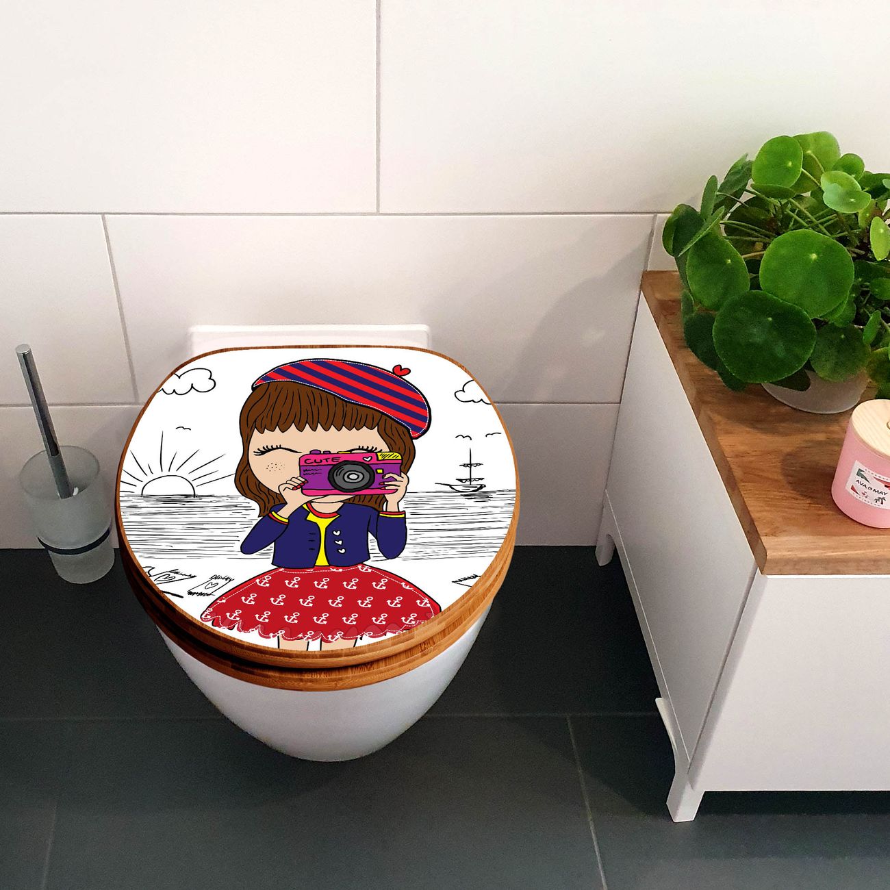 Design WC-Sitz Bambus Holz Motiv Süße Kamera