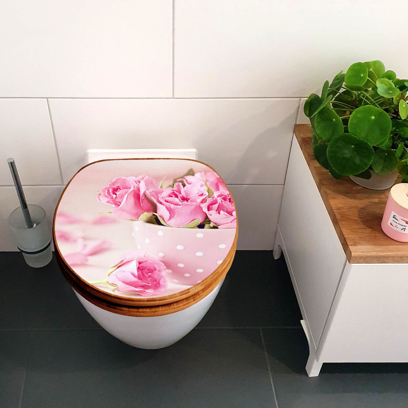 Design WC-Sitz Bambus Holz Motiv Tasse Voll Rosen