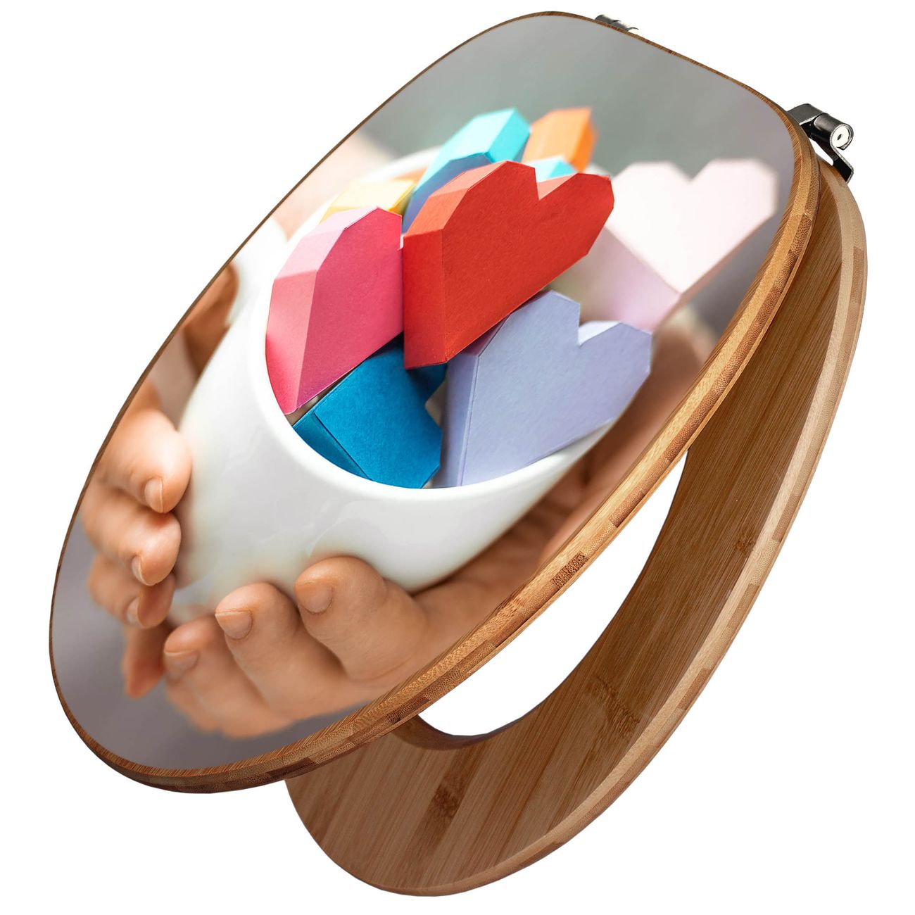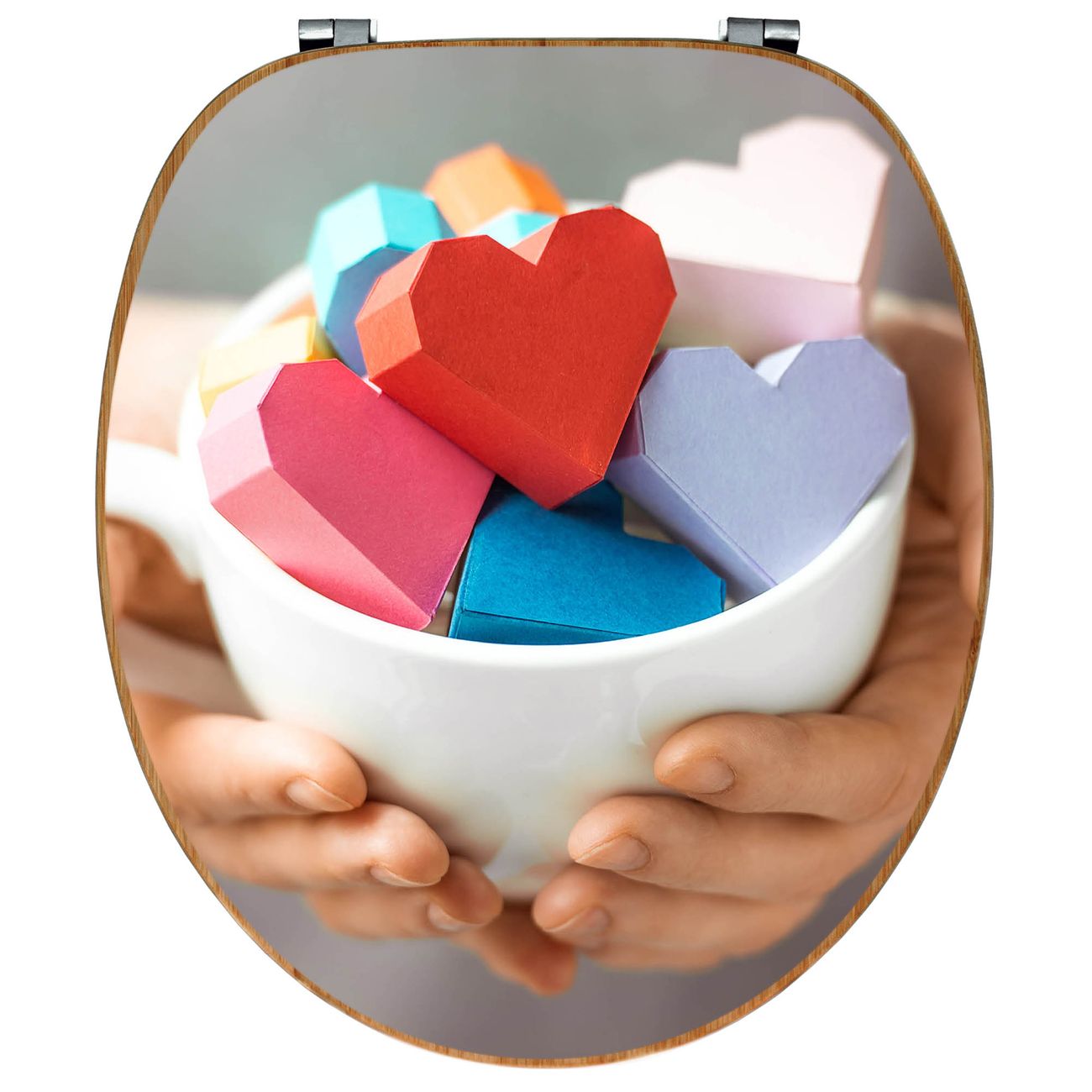 Design WC-Sitz Bambus Holz Motiv Tasse voller Herzen