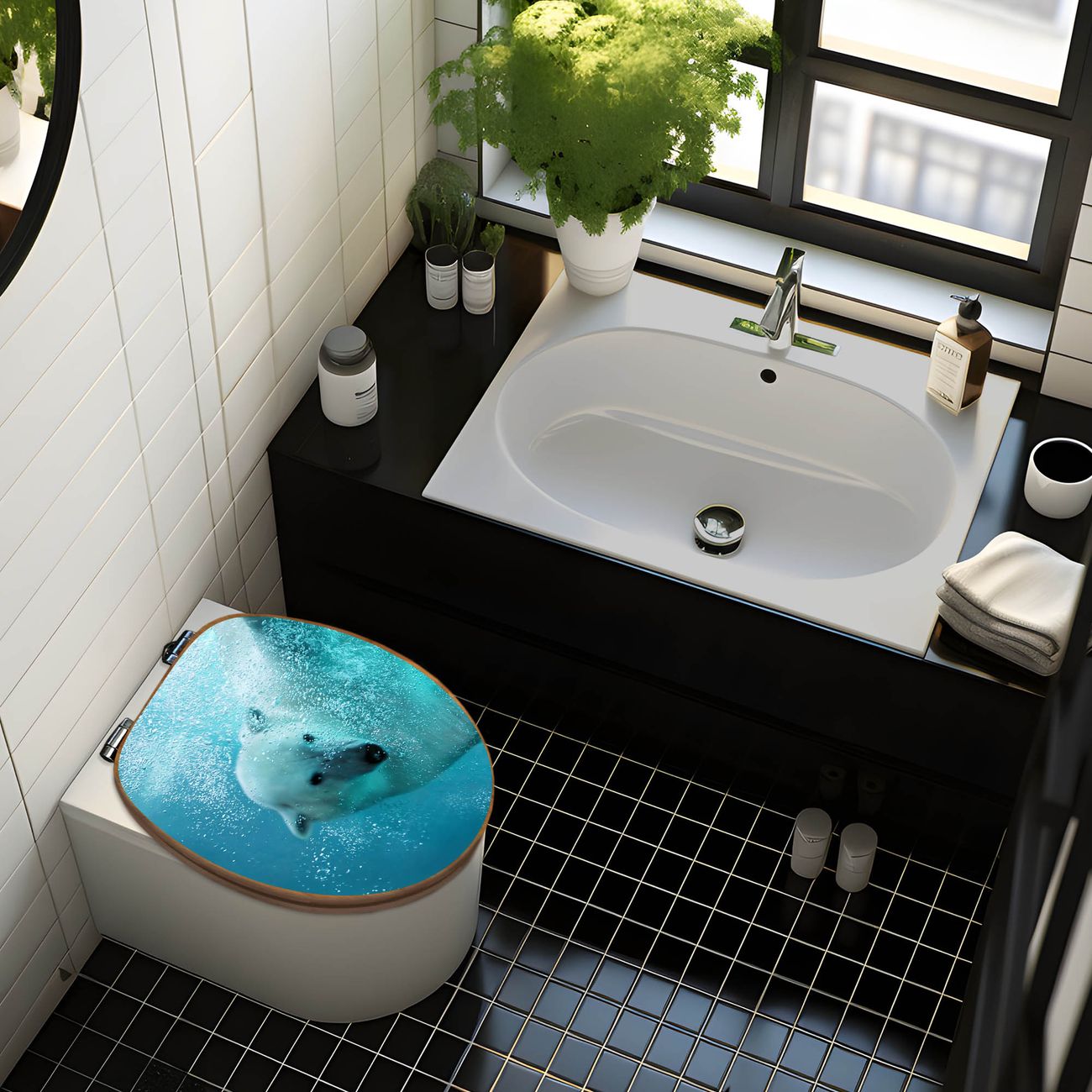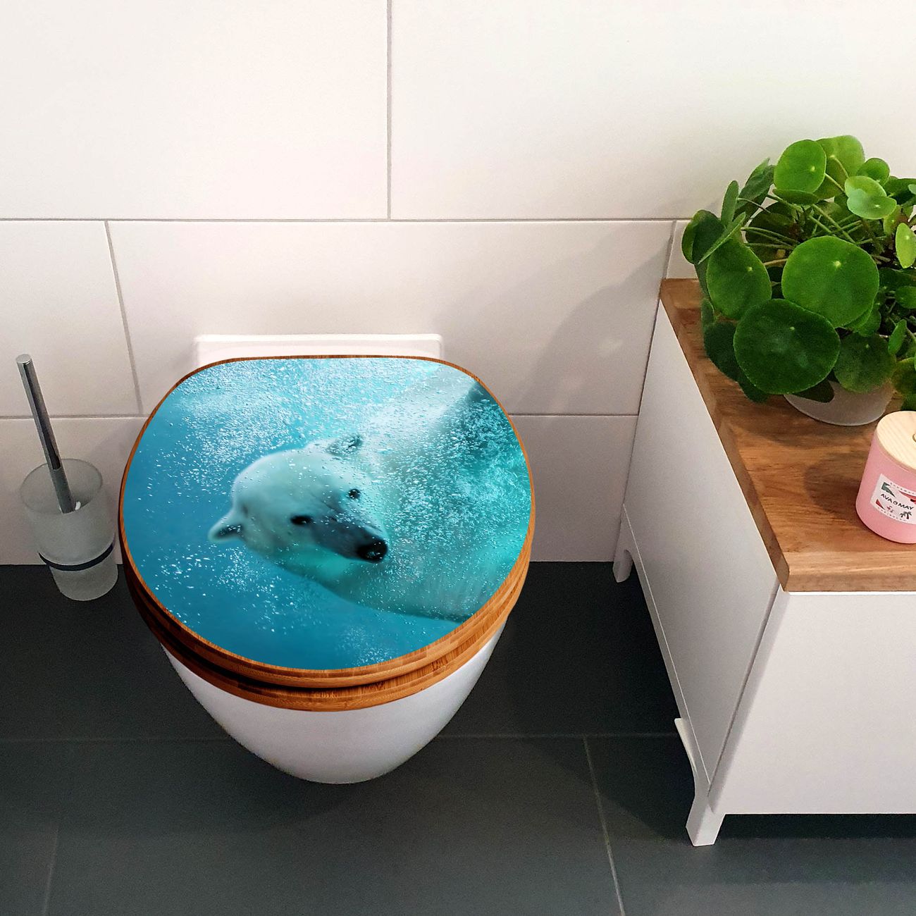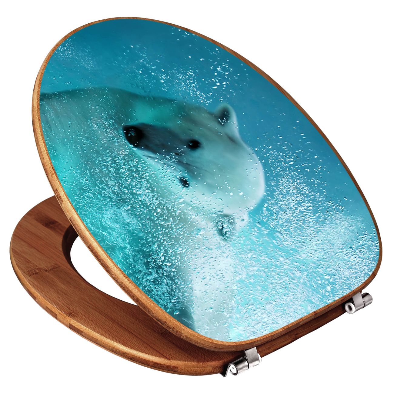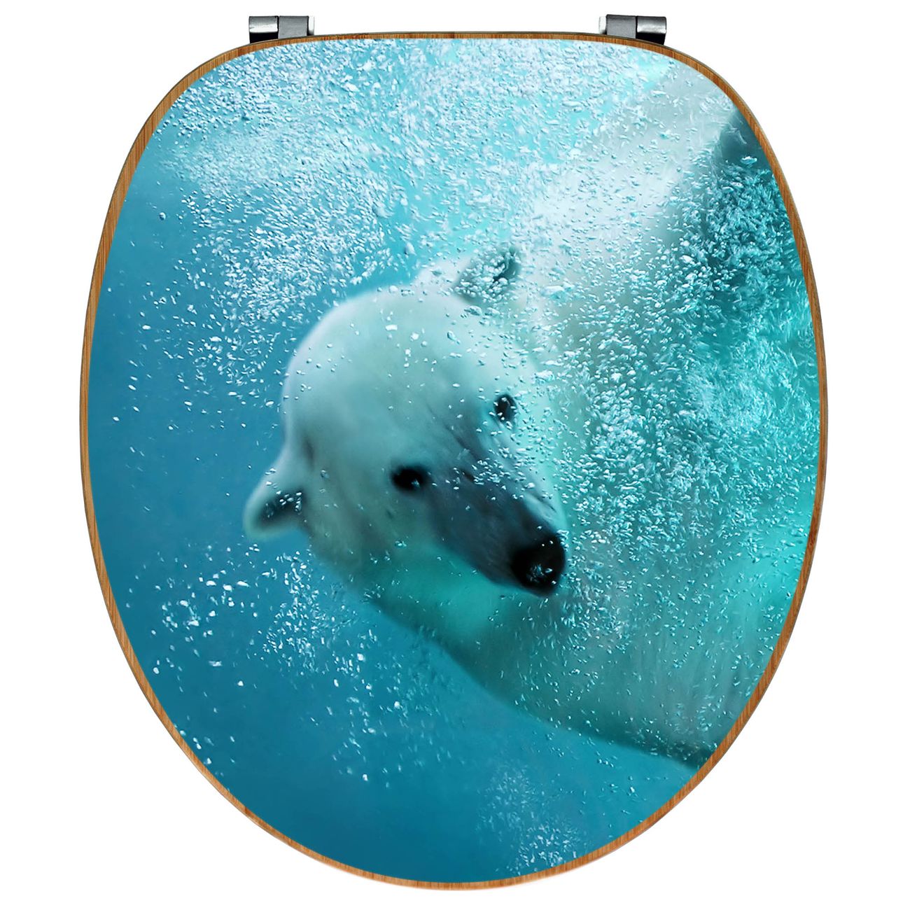 Design WC-Sitz Bambus Holz Motiv Tauchender Eisbär