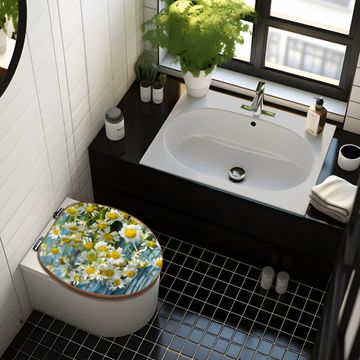 Mit dem banjado Toilettensitz in Bambus verbinden Sie Design und Funktionalität. Sie erhalten den WC-Sitz mit bewährt schwerer Holz Qualität und Universal Scharnieren. Das Motiv Motiv Tausendschön besteht aus einer schutzlaminierten Motivfolie, die durch das Schutzlaminat zusätzlich vor Kratzern schützt. Durch diesen Motivdruck wird der WC-Sitz zu einem Blickfang in Ihrem Bad.