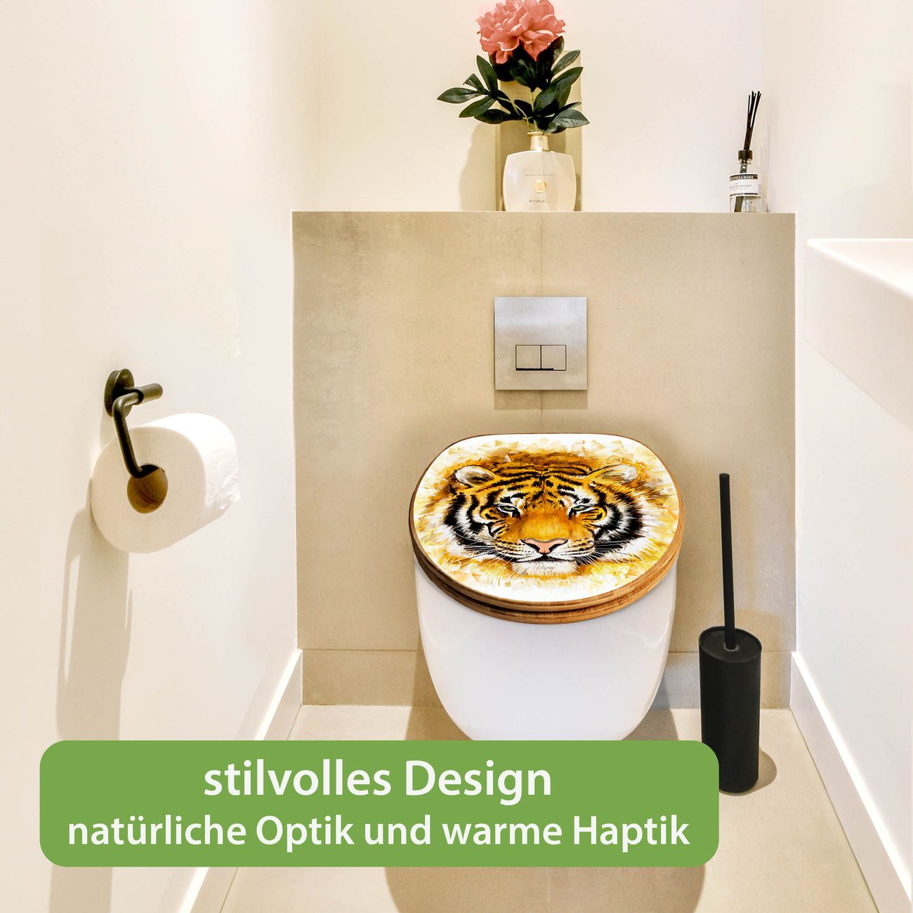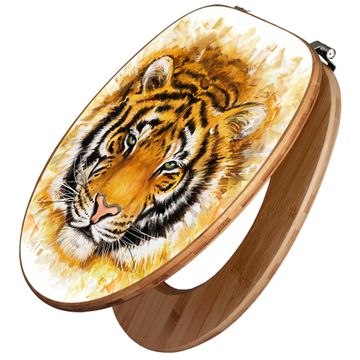 Design WC-Sitz Bambus Holz Motiv Tigerkopf