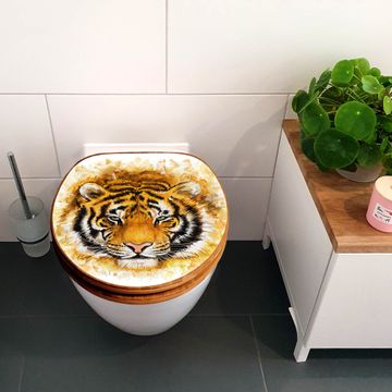 Mit dem banjado Toilettensitz in Bambus verbinden Sie Design und Funktionalität. Sie erhalten den WC-Sitz mit bewährt schwerer Holz Qualität und Universal Scharnieren. Das Motiv Motiv Tigerkopf besteht aus einer schutzlaminierten Motivfolie, die durch das Schutzlaminat zusätzlich vor Kratzern schützt. Durch diesen Motivdruck wird der WC-Sitz zu einem Blickfang in Ihrem Bad.