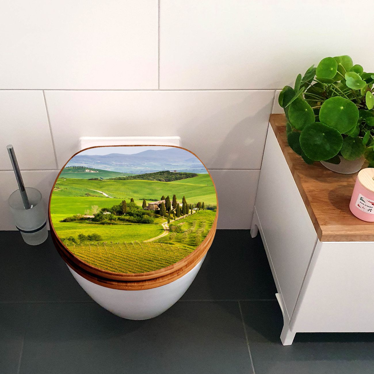 Design WC-Sitz Bambus Holz Motiv Toskana