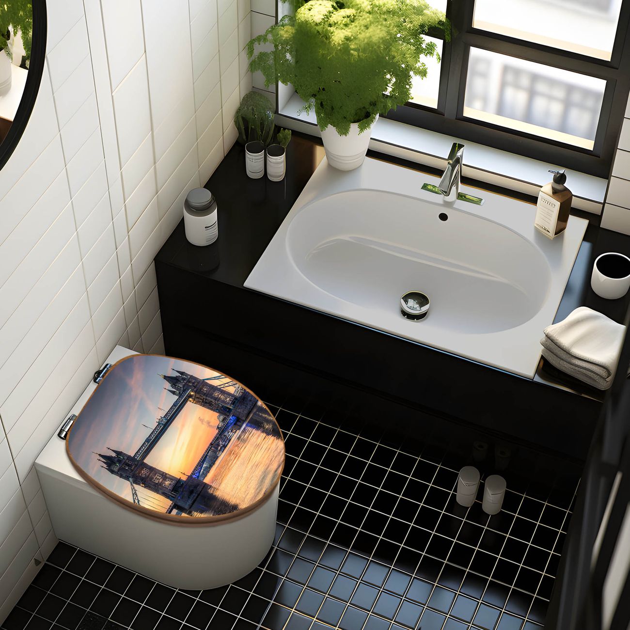 Design WC-Sitz Bambus Holz Motiv Tower Bridge