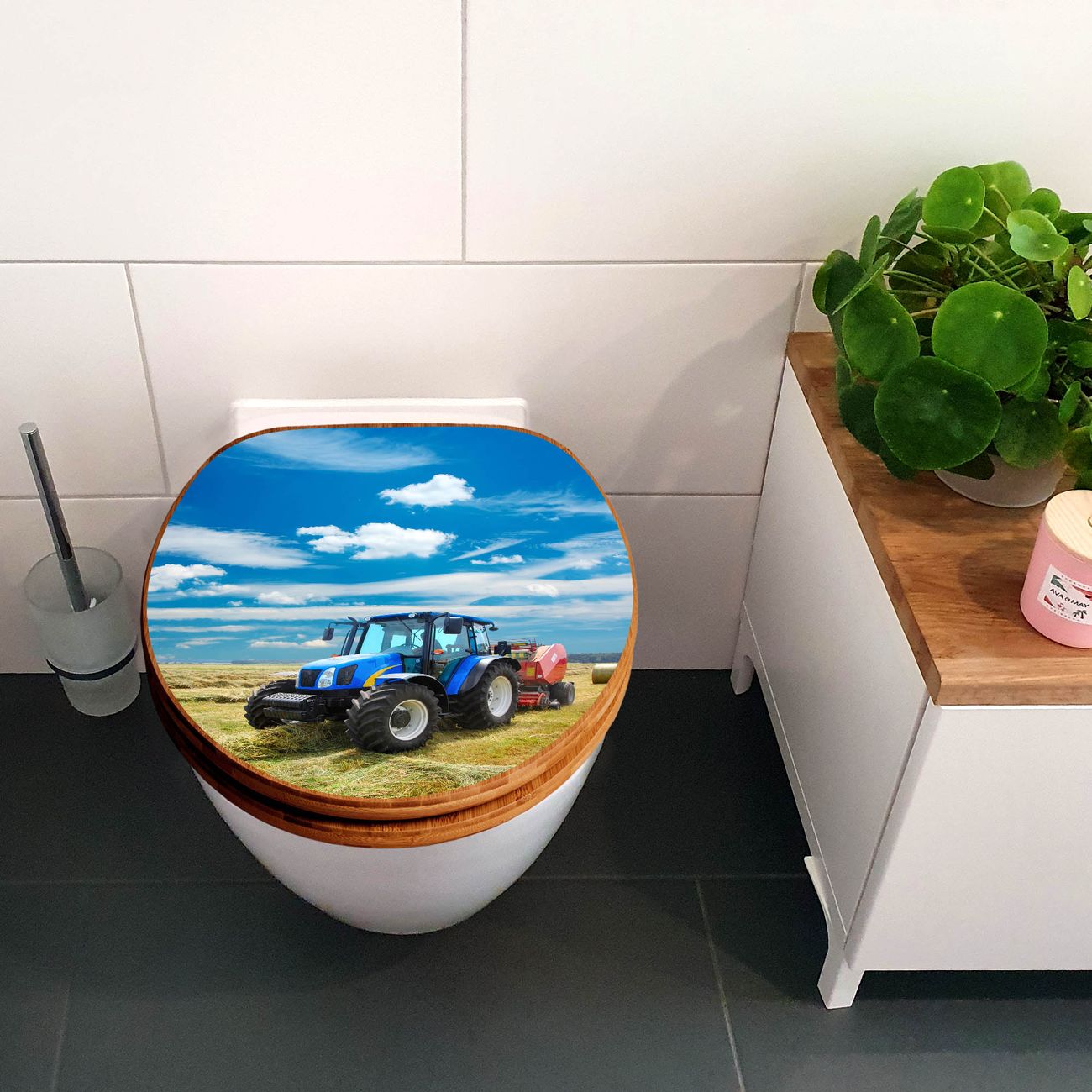 Design WC-Sitz Bambus Holz Motiv Traktor
