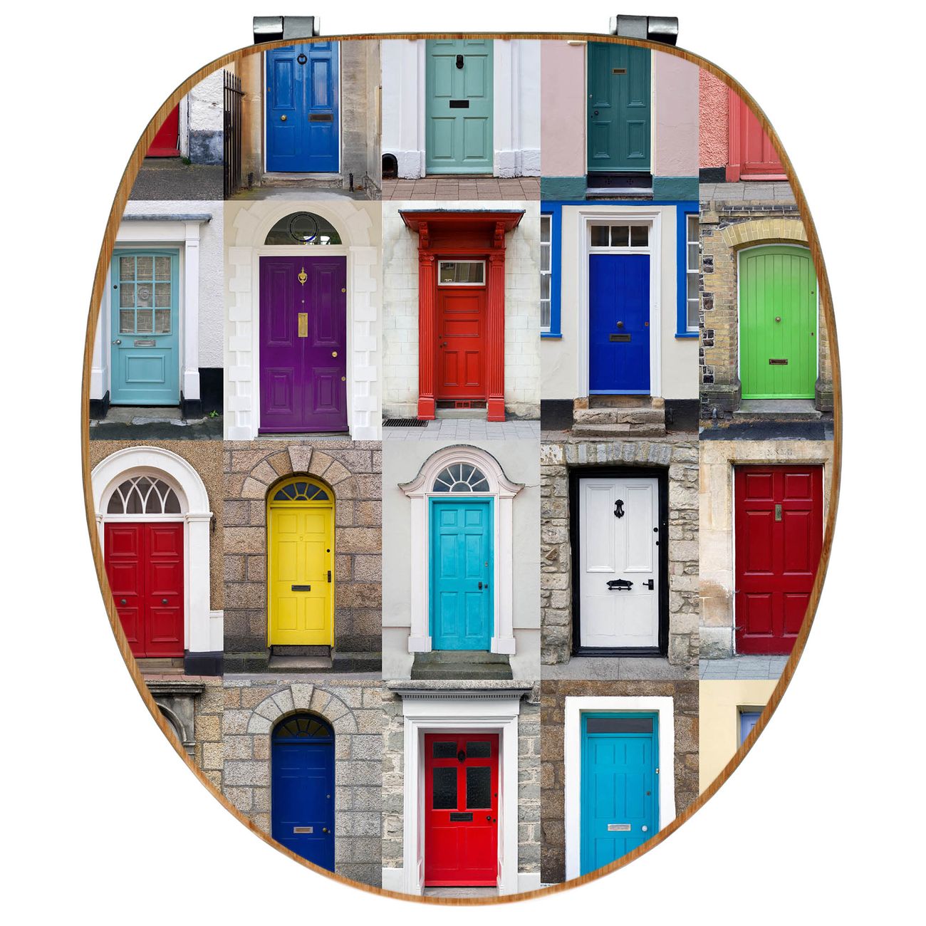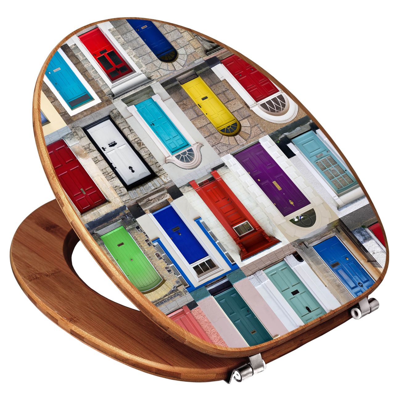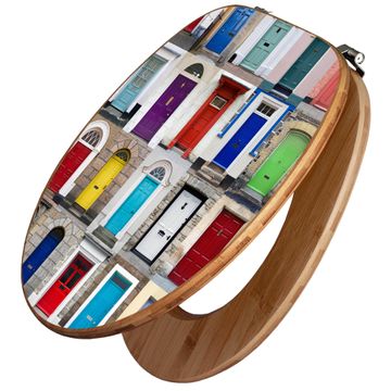 Mit dem banjado Toilettensitz in Bambus verbinden Sie Design und Funktionalität. Sie erhalten den WC-Sitz mit bewährt schwerer Holz Qualität und Universal Scharnieren. Das Motiv Motiv Türen besteht aus einer schutzlaminierten Motivfolie, die durch das Schutzlaminat zusätzlich vor Kratzern schützt. Durch diesen Motivdruck wird der WC-Sitz zu einem Blickfang in Ihrem Bad.
