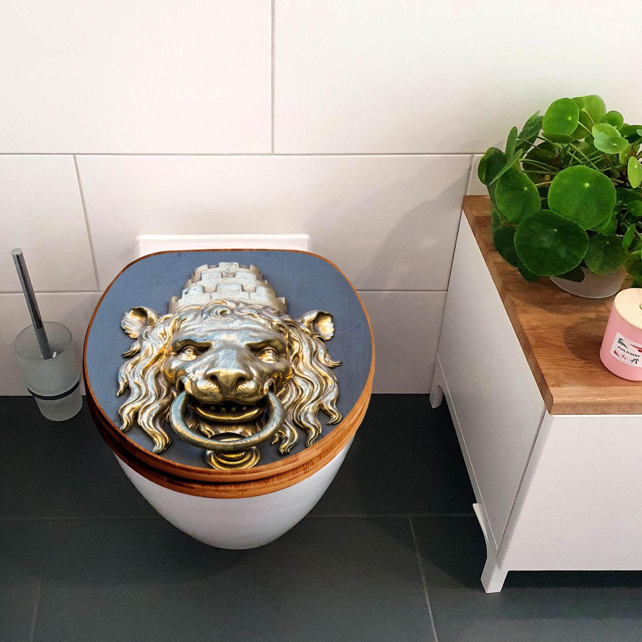 Design WC-Sitz Bambus Holz Motiv Türklopfer Löwe