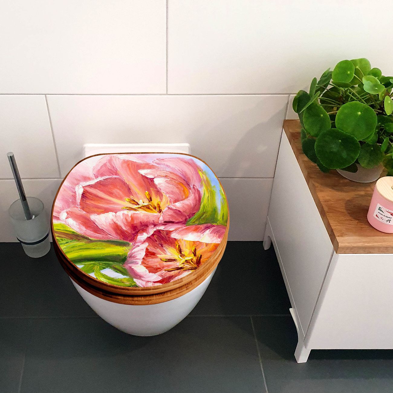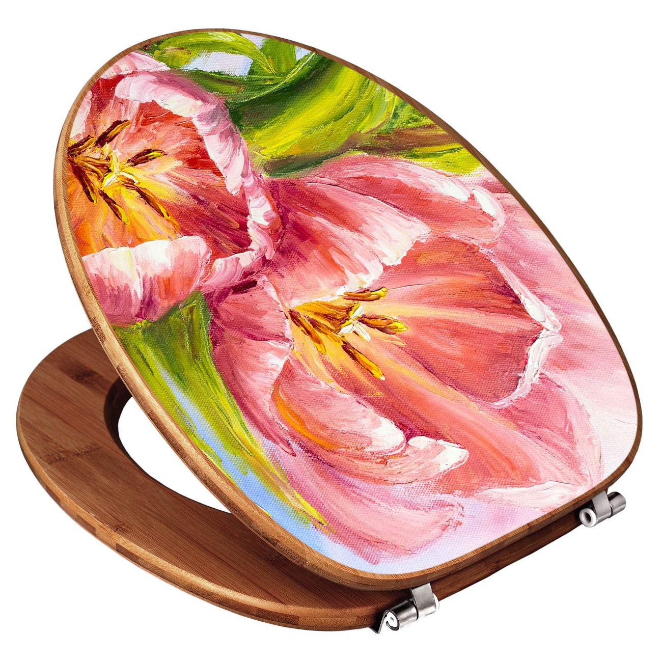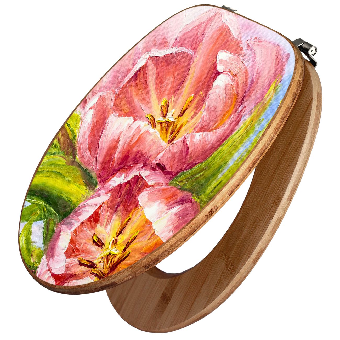 Design WC-Sitz Bambus Holz Motiv Tulpen Detail