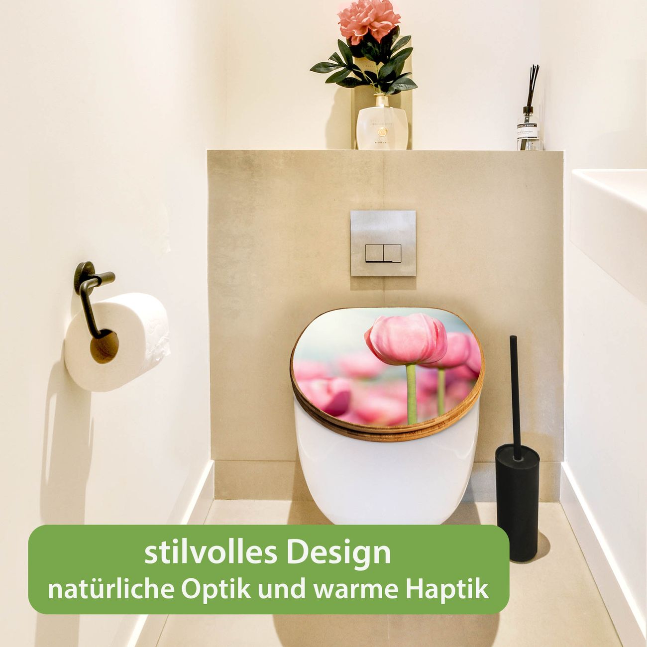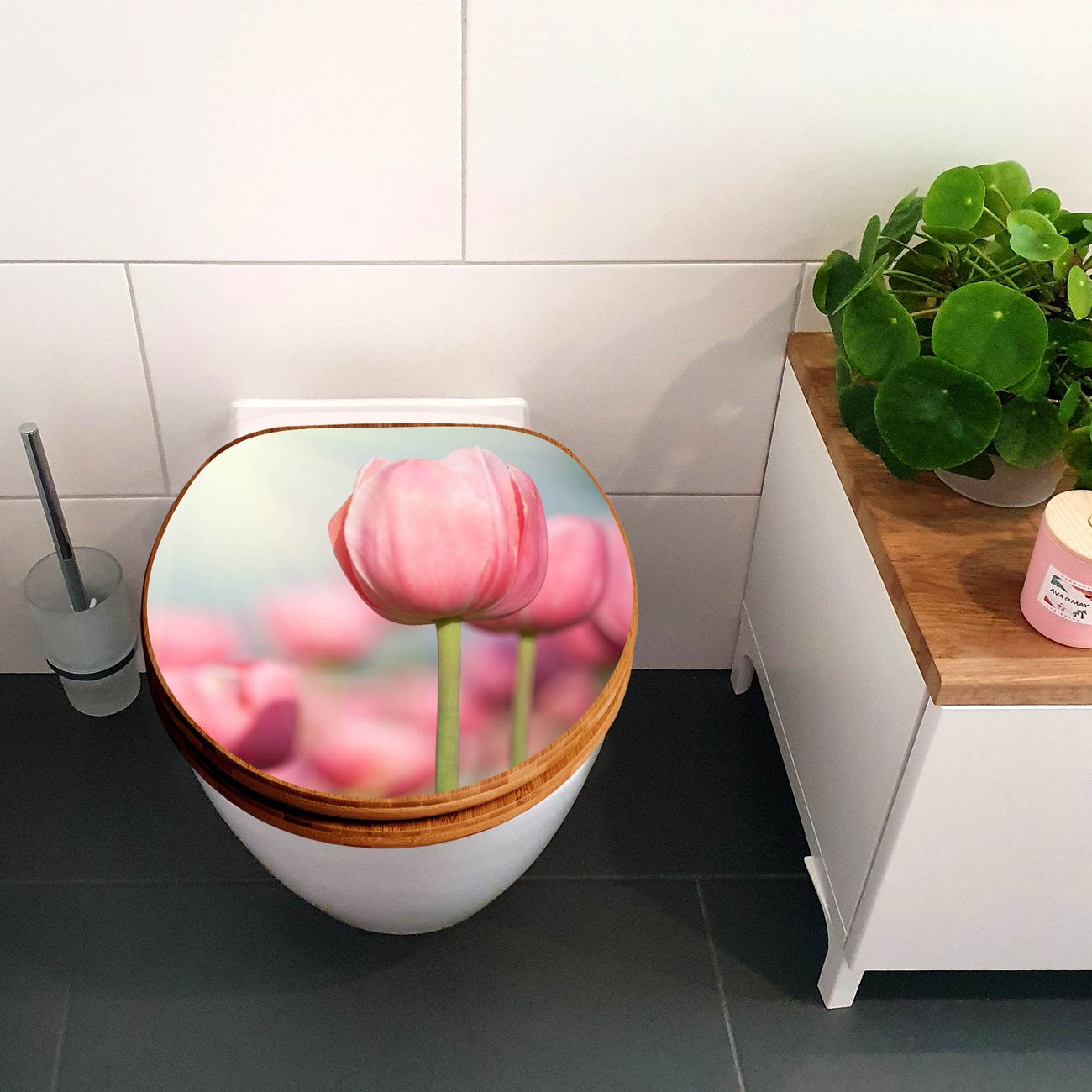 Design WC-Sitz Bambus Holz Motiv Tulpen