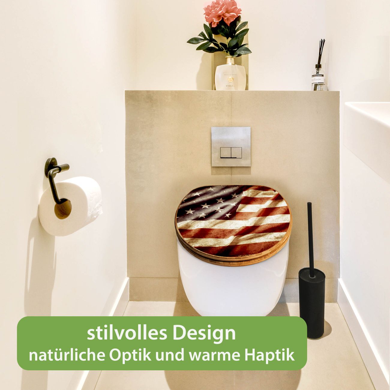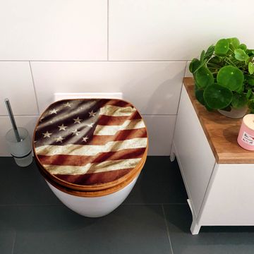 Mit dem banjado Toilettensitz in Bambus verbinden Sie Design und Funktionalität. Sie erhalten den WC-Sitz mit bewährt schwerer Holz Qualität und Universal Scharnieren. Das Motiv Motiv United States besteht aus einer schutzlaminierten Motivfolie, die durch das Schutzlaminat zusätzlich vor Kratzern schützt. Durch diesen Motivdruck wird der WC-Sitz zu einem Blickfang in Ihrem Bad.