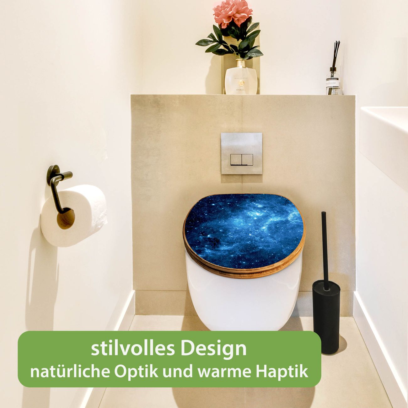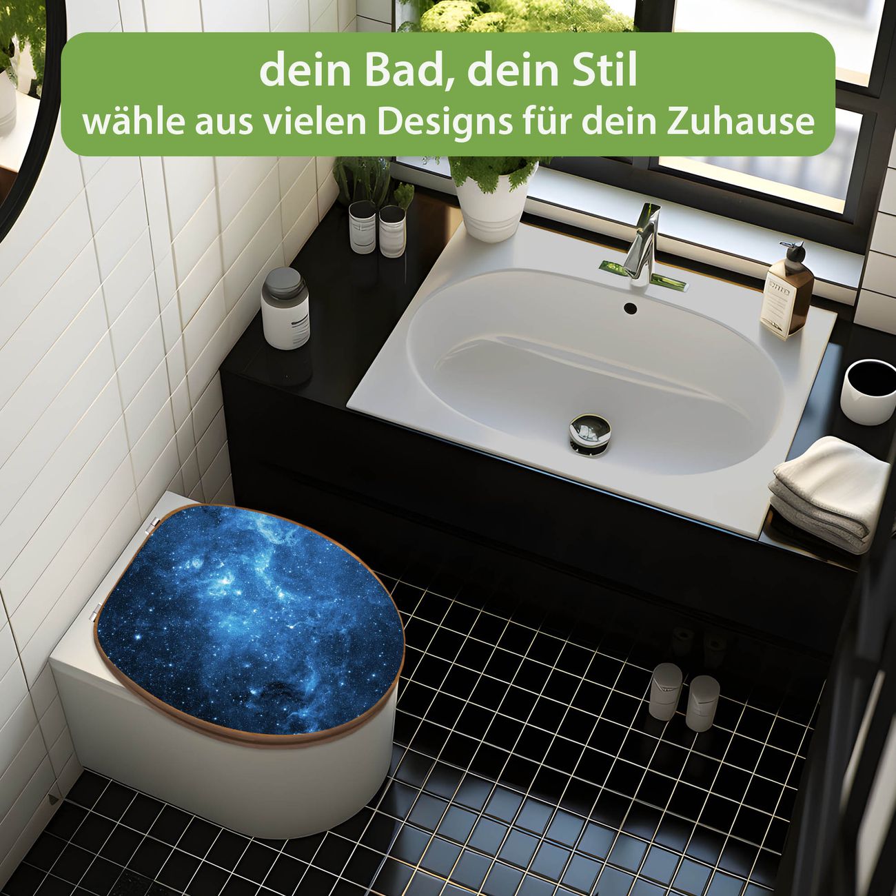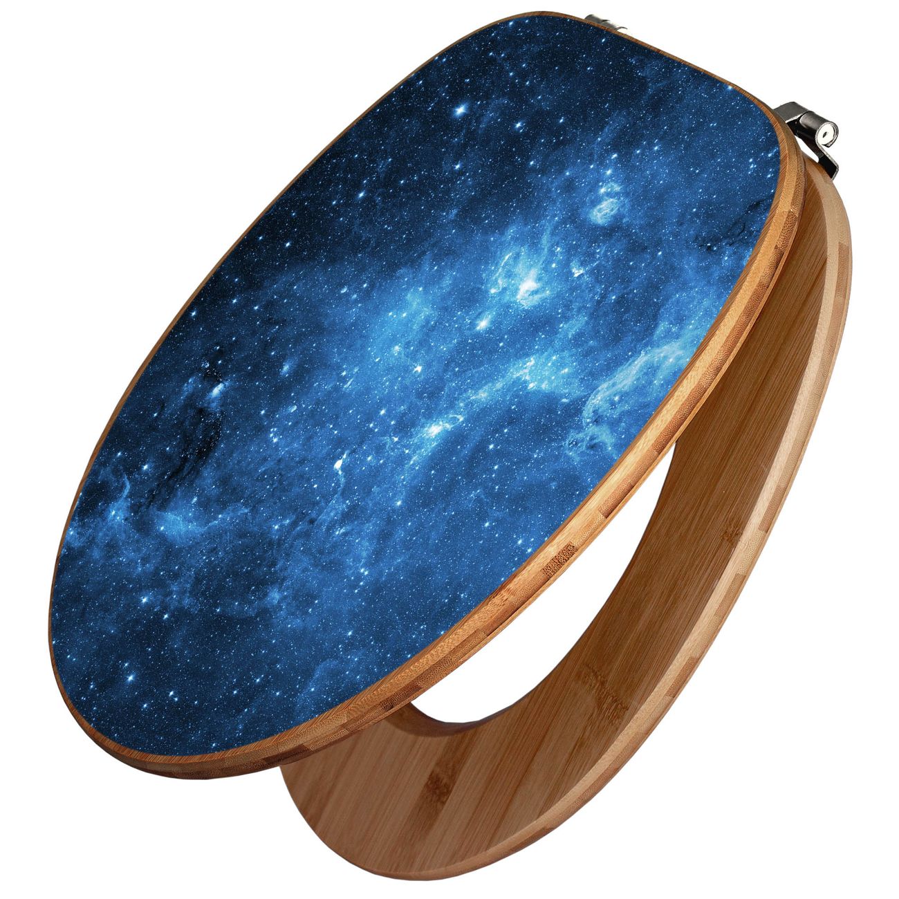 Mit dem banjado Toilettensitz in Bambus verbinden Sie Design und Funktionalität. Sie erhalten den WC-Sitz mit bewährt schwerer Holz Qualität und Universal Scharnieren. Das Motiv Motiv Universum besteht aus einer schutzlaminierten Motivfolie, die durch das Schutzlaminat zusätzlich vor Kratzern schützt. Durch diesen Motivdruck wird der WC-Sitz zu einem Blickfang in Ihrem Bad.