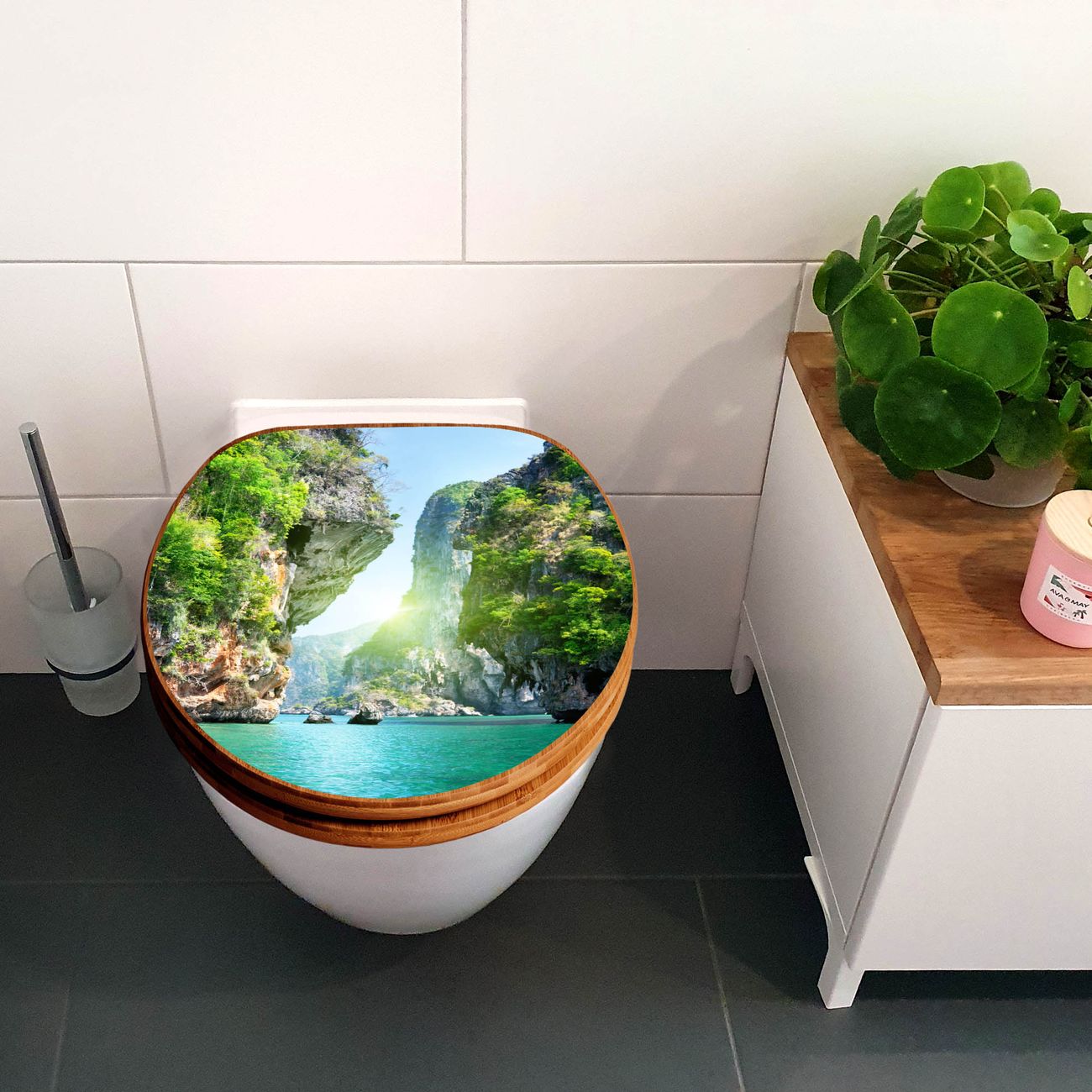 Design WC-Sitz Bambus Holz Motiv Versteckte Bucht
