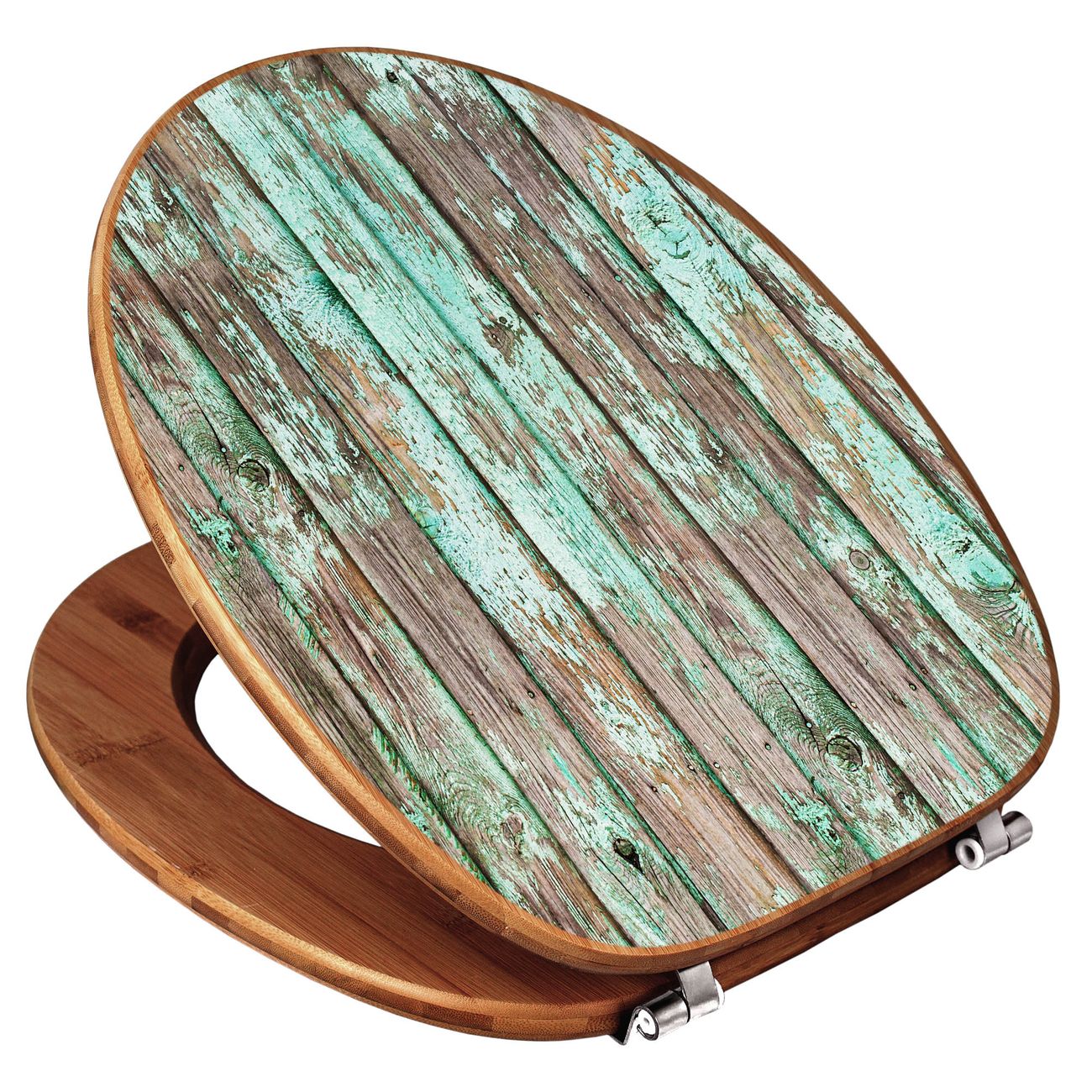 Mit dem banjado Toilettensitz in Bambus verbinden Sie Design und Funktionalität. Sie erhalten den WC-Sitz mit bewährt schwerer Holz Qualität und Universal Scharnieren. Das Motiv Motiv Verwittertes Holz besteht aus einer schutzlaminierten Motivfolie, die durch das Schutzlaminat zusätzlich vor Kratzern schützt. Durch diesen Motivdruck wird der WC-Sitz zu einem Blickfang in Ihrem Bad.