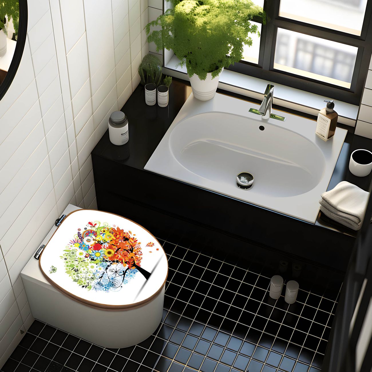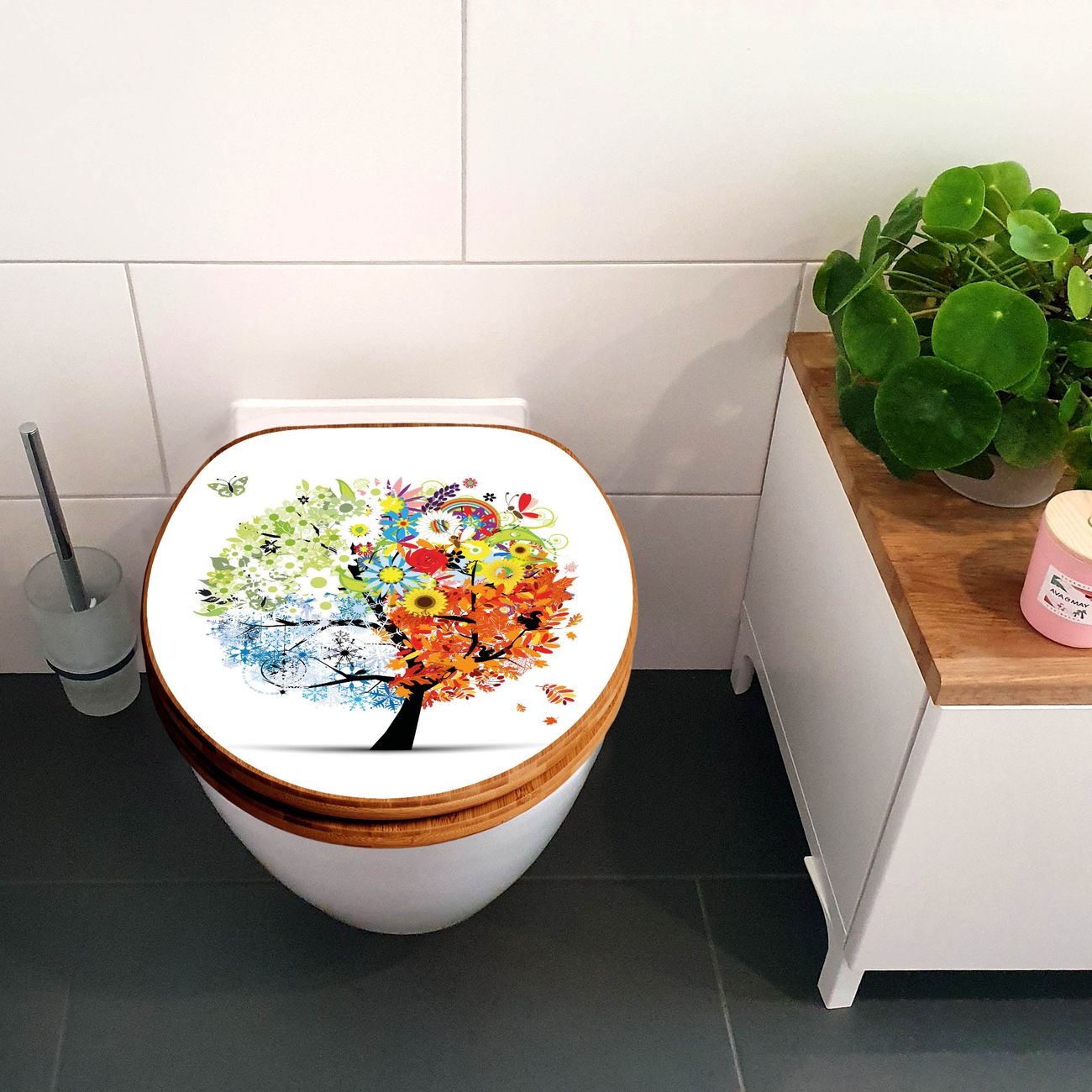 Design WC-Sitz Bambus Holz Motiv Vier Jahreszeiten
