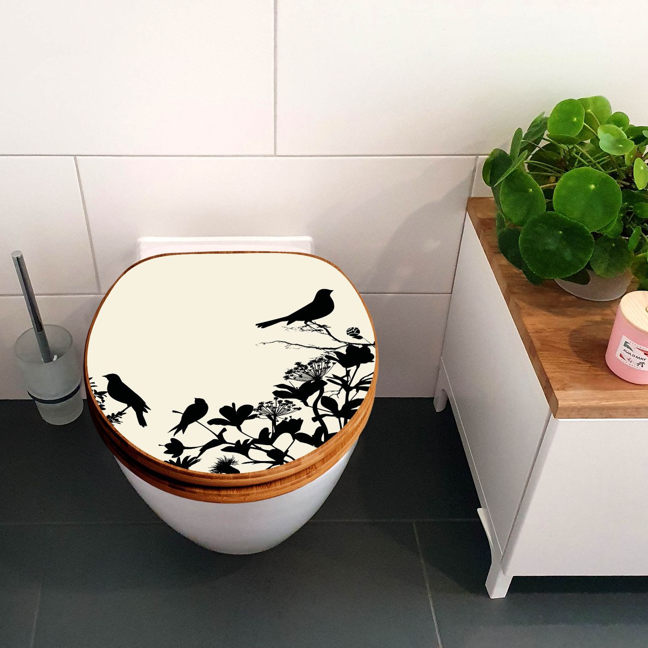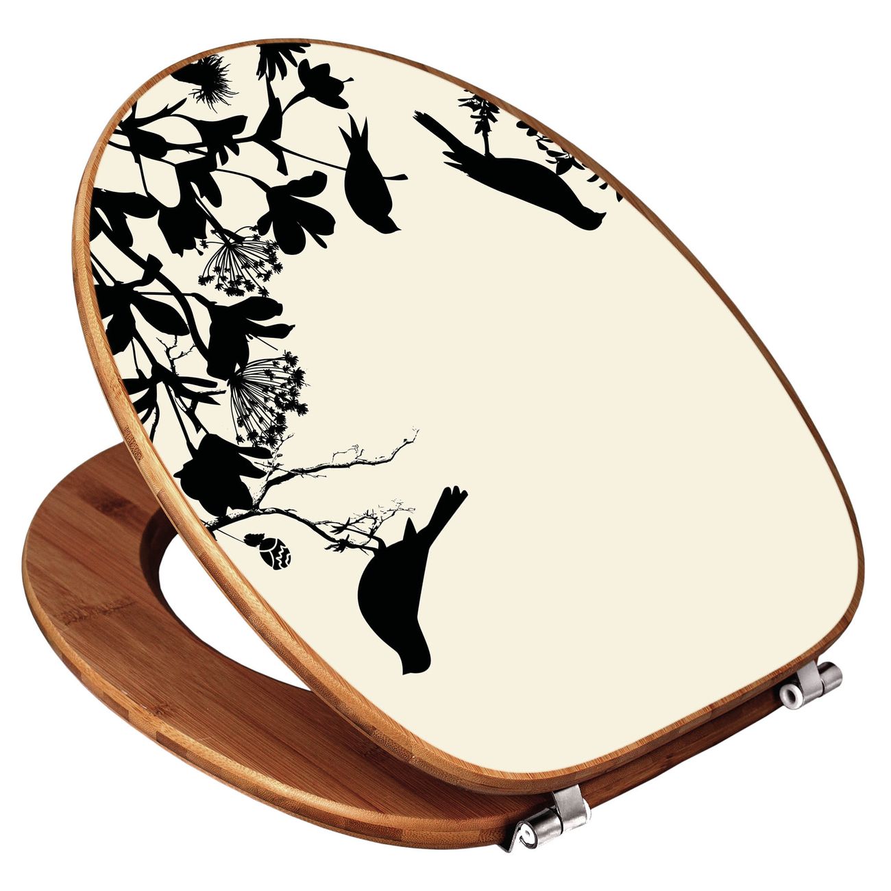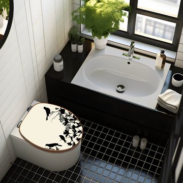Design WC-Sitz Bambus Holz Motiv Vögel Schattenriß