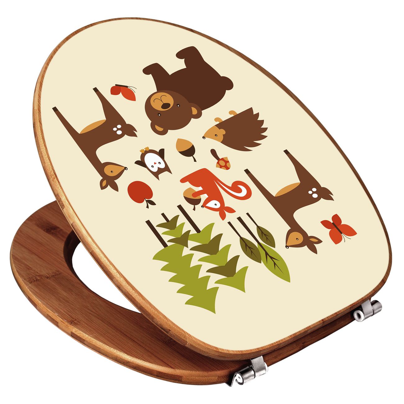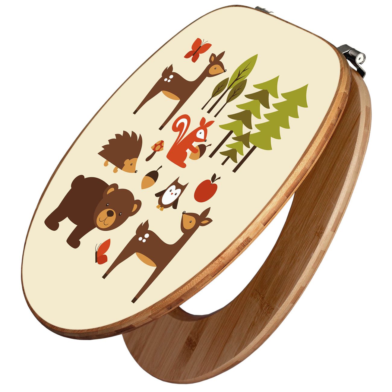 Design WC-Sitz Bambus Holz Motiv Waldfreunde