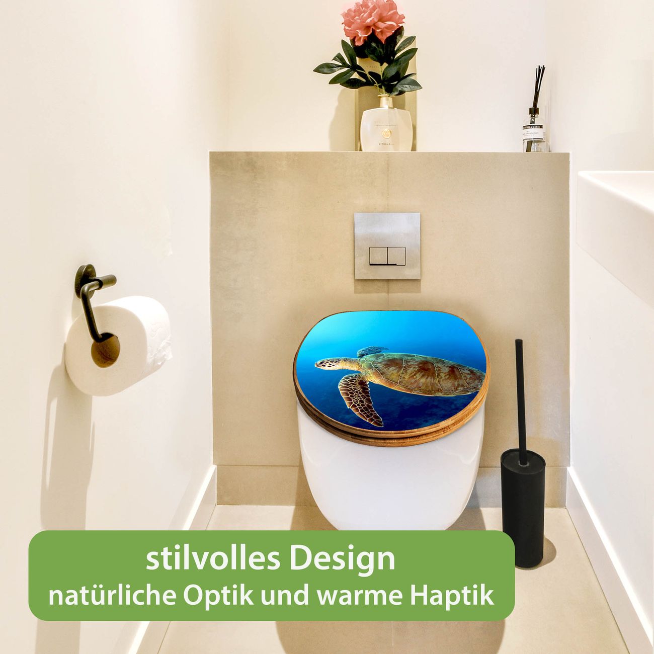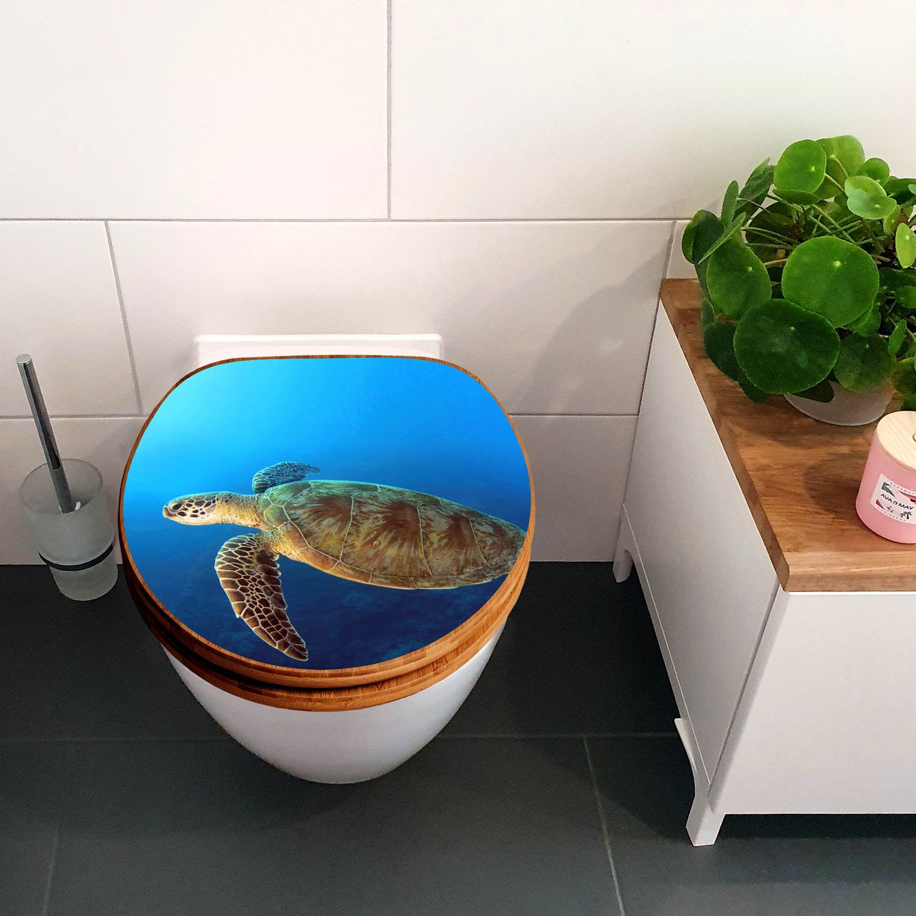 Design WC-Sitz Bambus Holz Motiv Wasserschildkröte