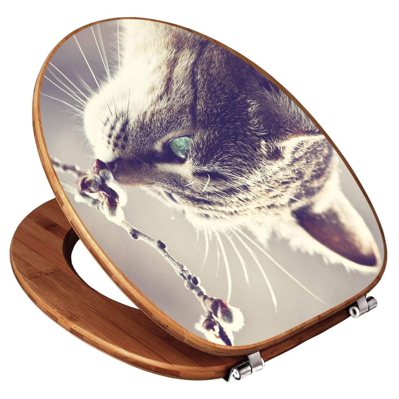 Design WC-Sitz Bambus Holz Motiv Weidenkätzchen