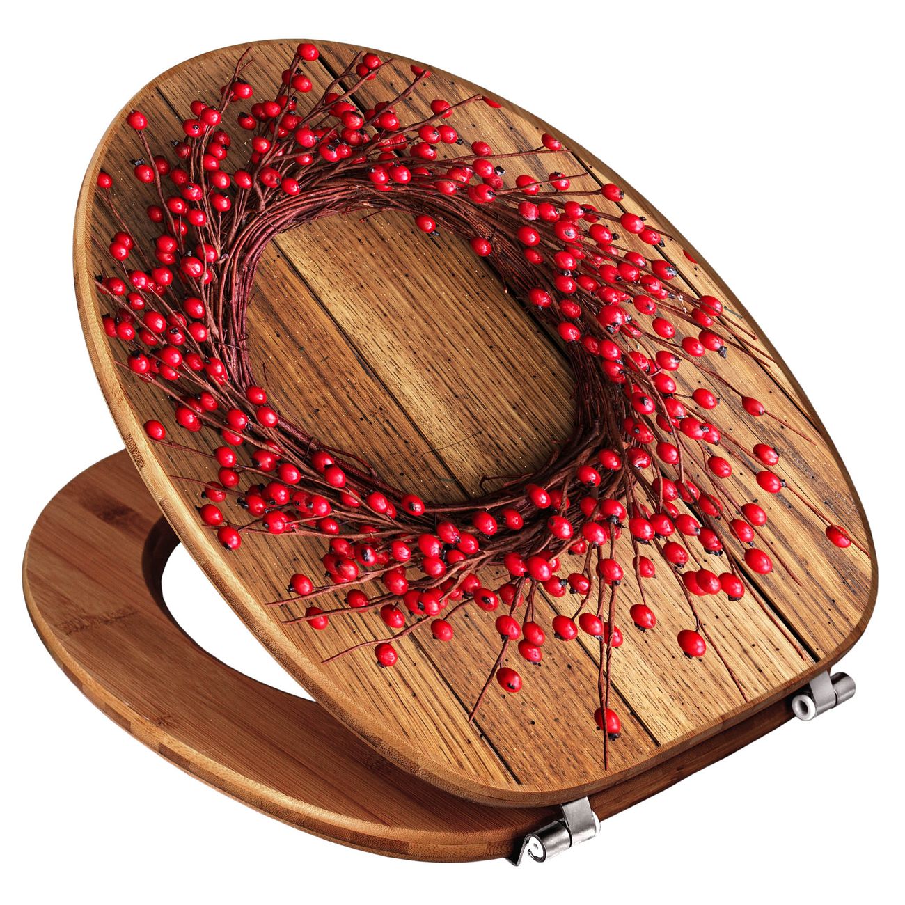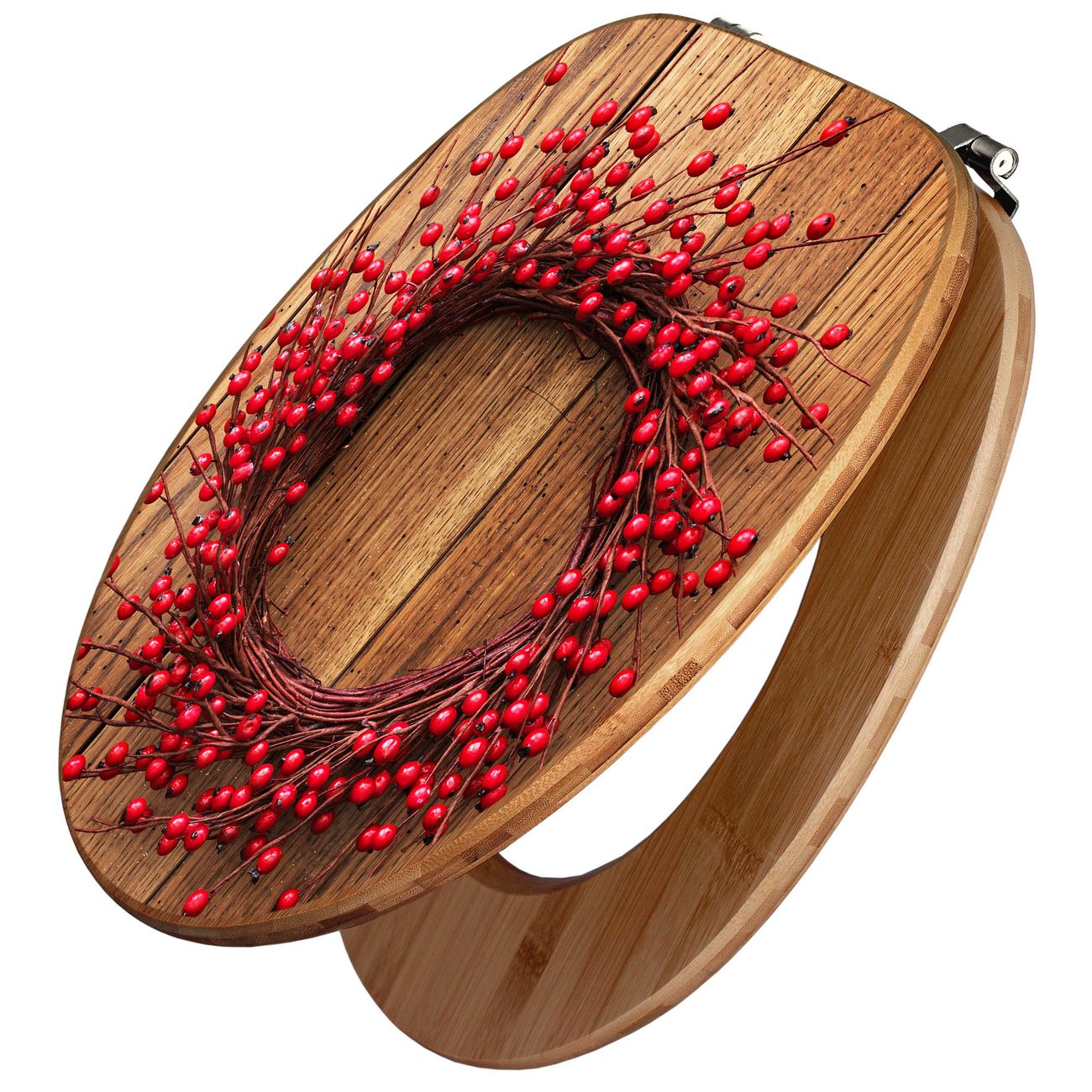 Design WC-Sitz Bambus Holz Motiv Weihnachtskranz