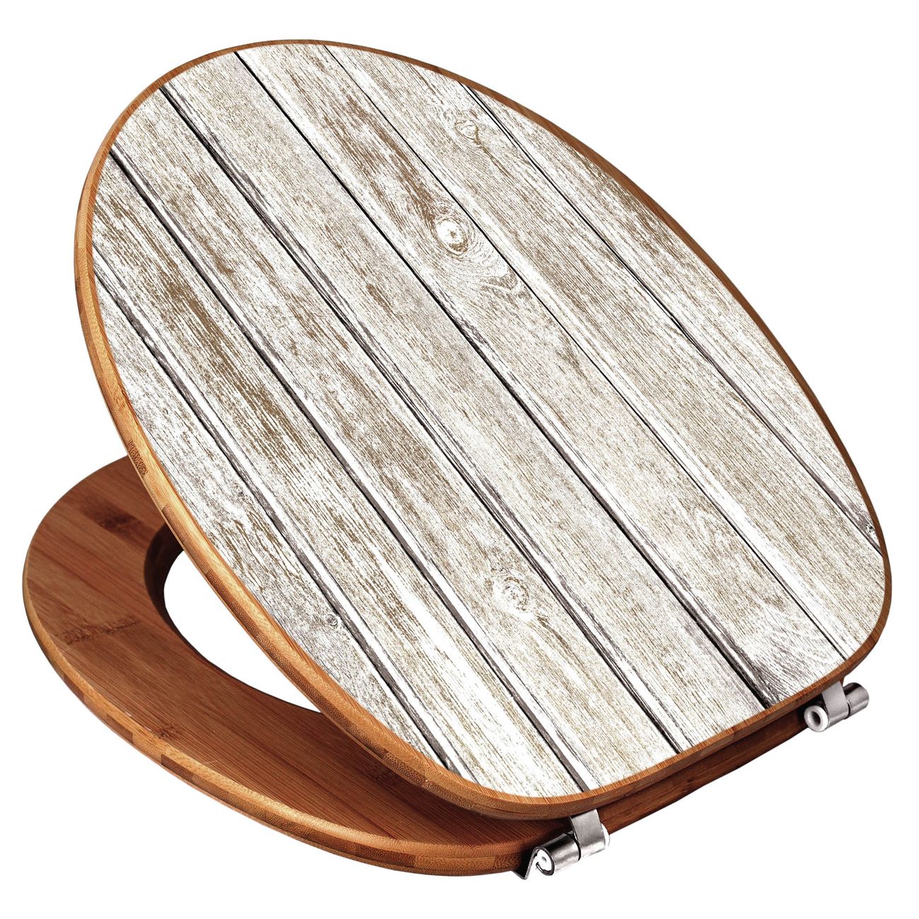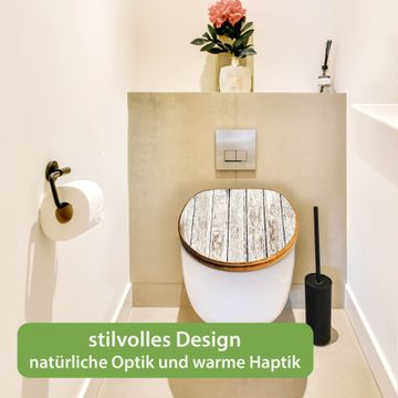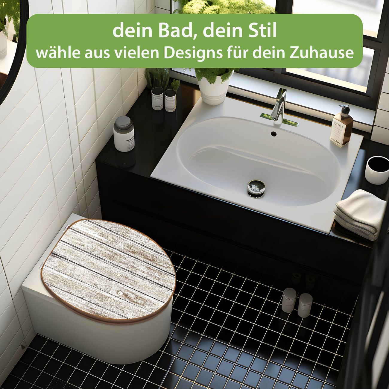 Mit dem banjado Toilettensitz in Bambus verbinden Sie Design und Funktionalität. Sie erhalten den WC-Sitz mit bewährt schwerer Holz Qualität und Universal Scharnieren. Das Motiv Motiv Weißes Holz besteht aus einer schutzlaminierten Motivfolie, die durch das Schutzlaminat zusätzlich vor Kratzern schützt. Durch diesen Motivdruck wird der WC-Sitz zu einem Blickfang in Ihrem Bad.