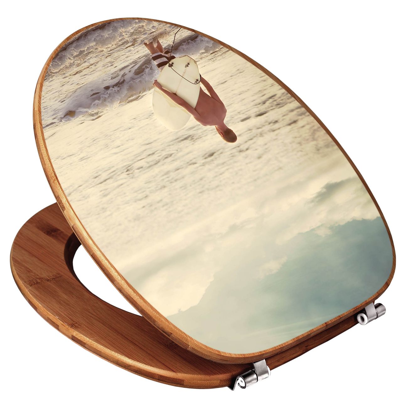 Design WC-Sitz Bambus Holz Motiv Wellenreiten Gehen 2