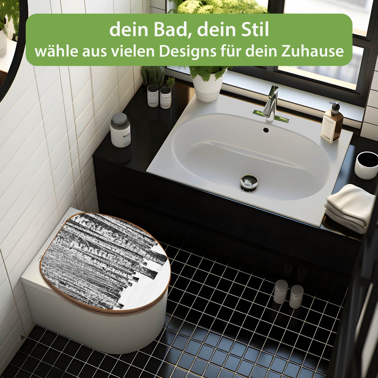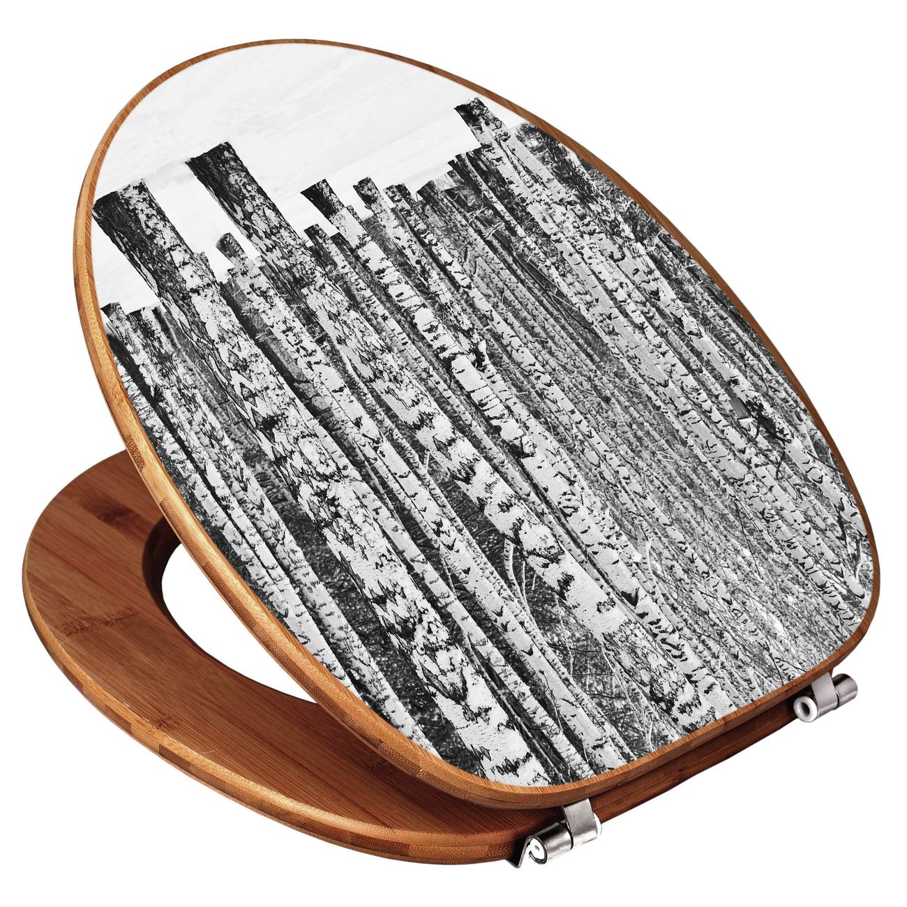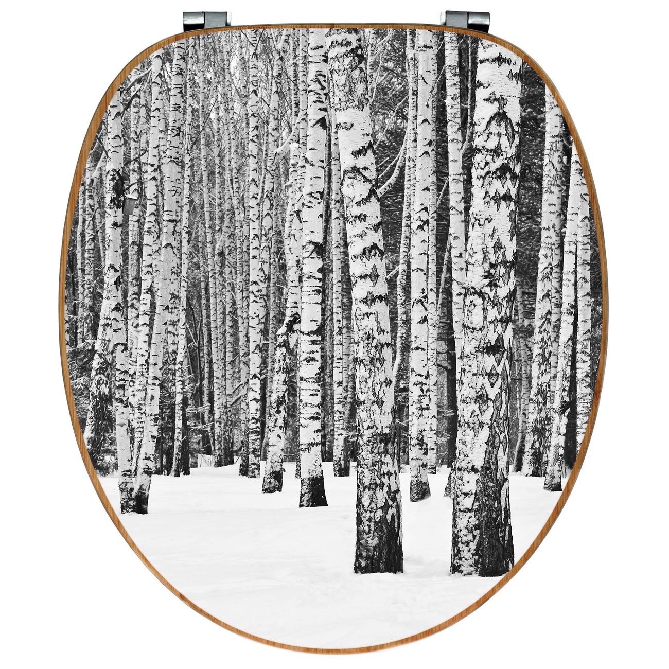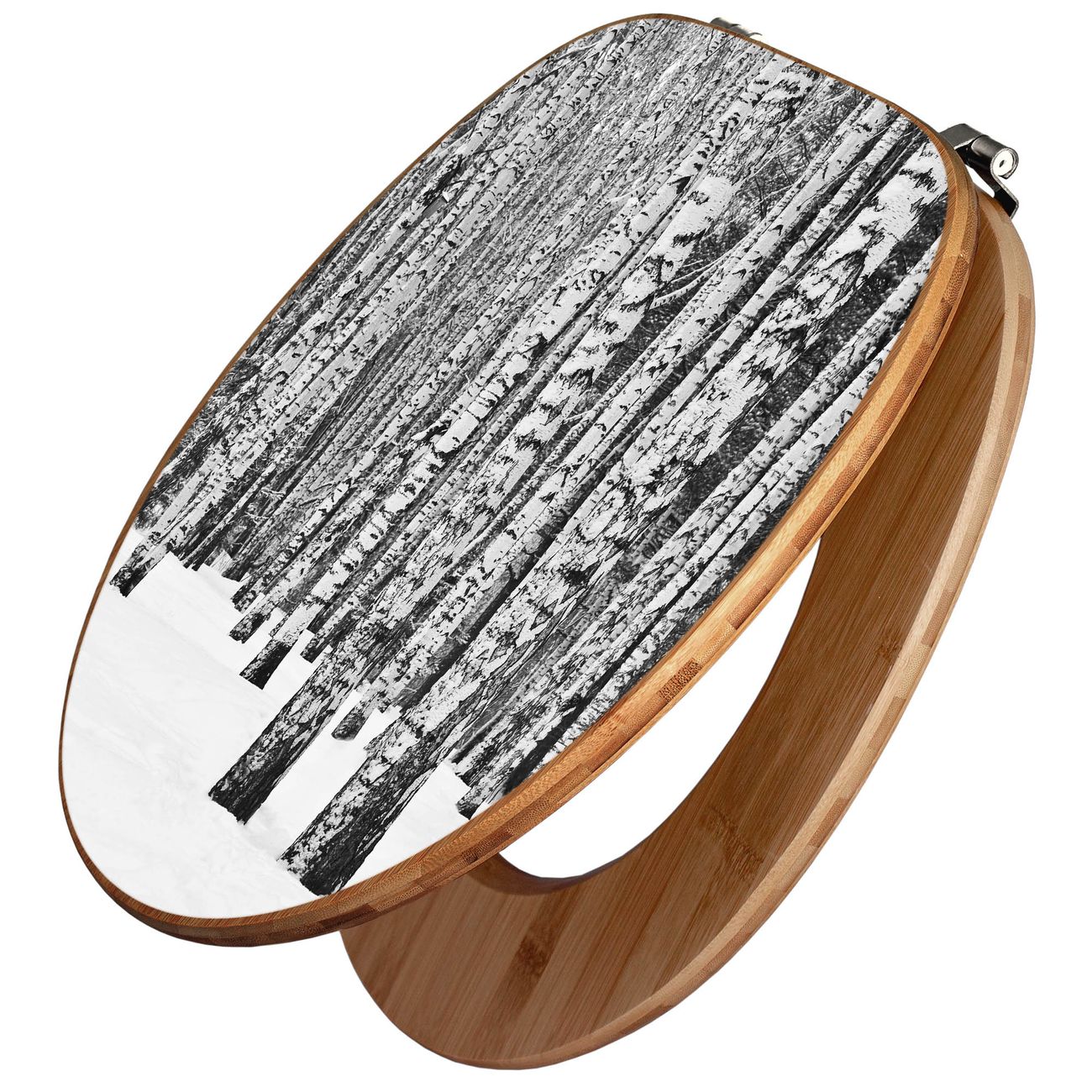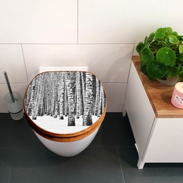Design WC-Sitz Bambus Holz Motiv Winterlicher Birkenwald