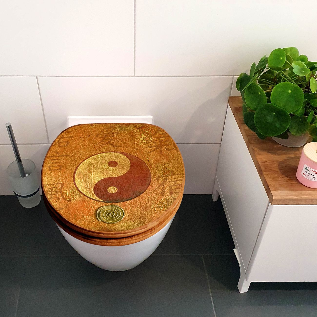 Design WC-Sitz Bambus Holz Motiv Yin Yang