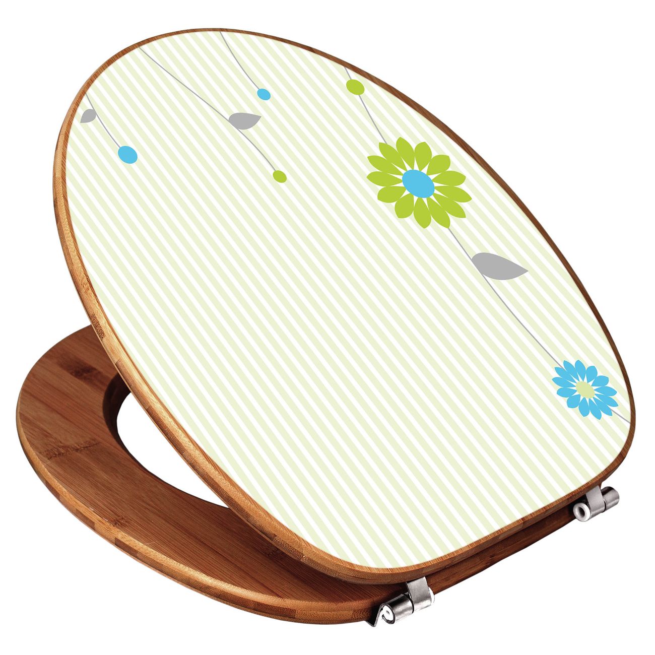 Mit dem banjado Toilettensitz in Bambus verbinden Sie Design und Funktionalität. Sie erhalten den WC-Sitz mit bewährt schwerer Holz Qualität und Universal Scharnieren. Das Motiv Motiv Zarte Blumen besteht aus einer schutzlaminierten Motivfolie, die durch das Schutzlaminat zusätzlich vor Kratzern schützt. Durch diesen Motivdruck wird der WC-Sitz zu einem Blickfang in Ihrem Bad.
